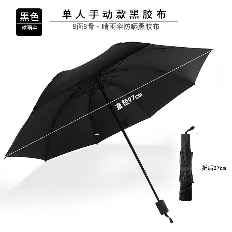 - 8骨黑色-黑胶-伞下98cm