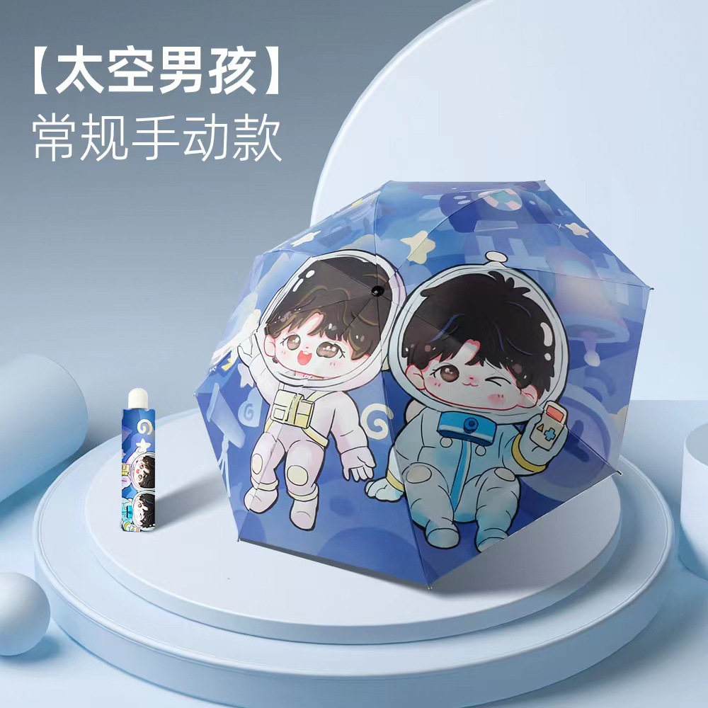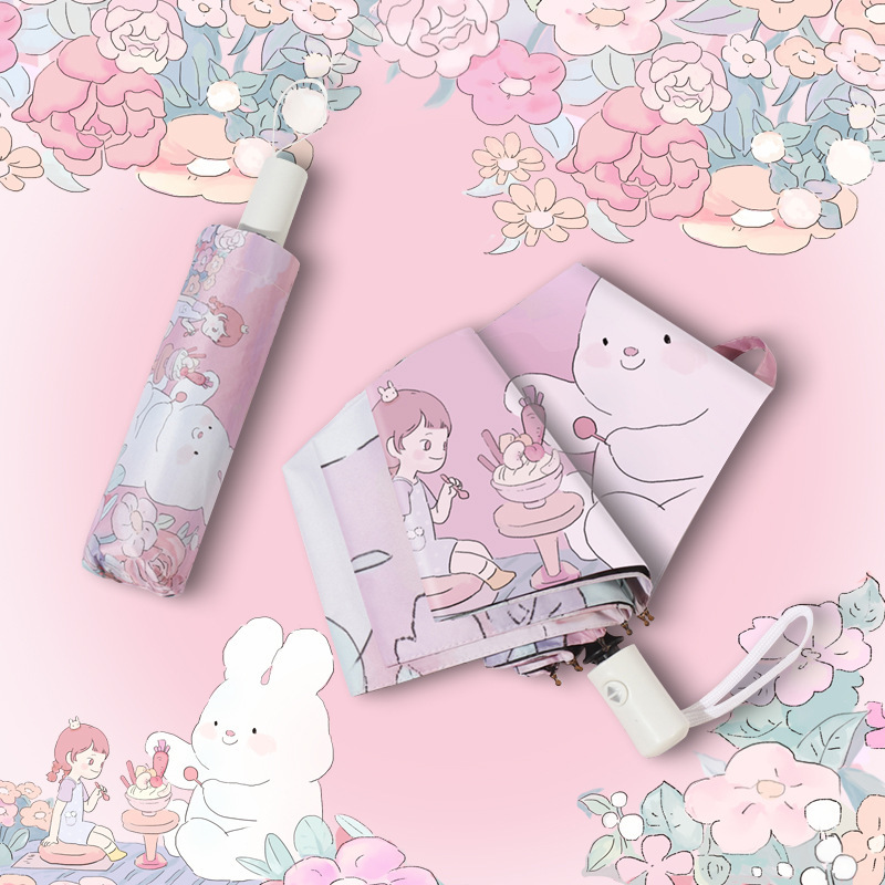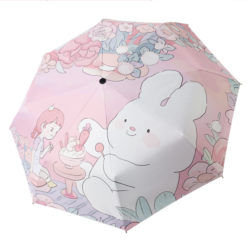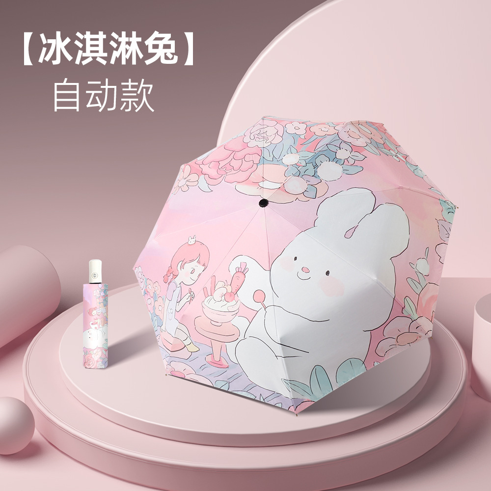 卡通折叠伞自动女晴雨伞黑胶防晒防紫外线三折伞太阳伞
