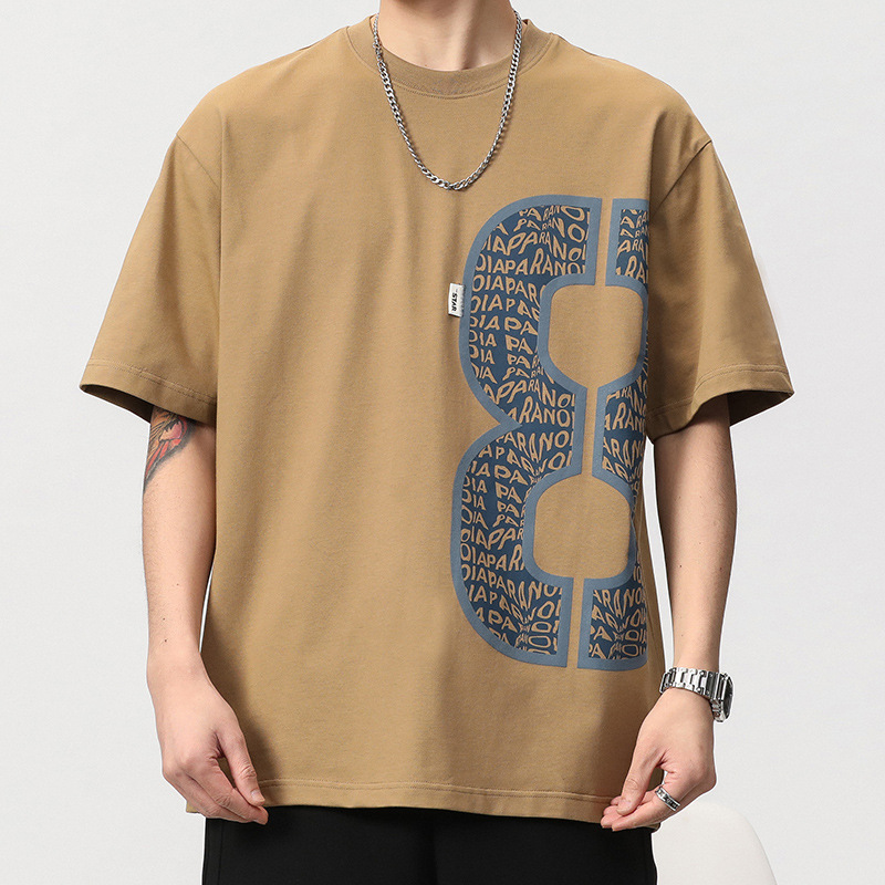 美式夏季新款短袖数字印花看潮流宽松加大码休闲圆领套头T恤
