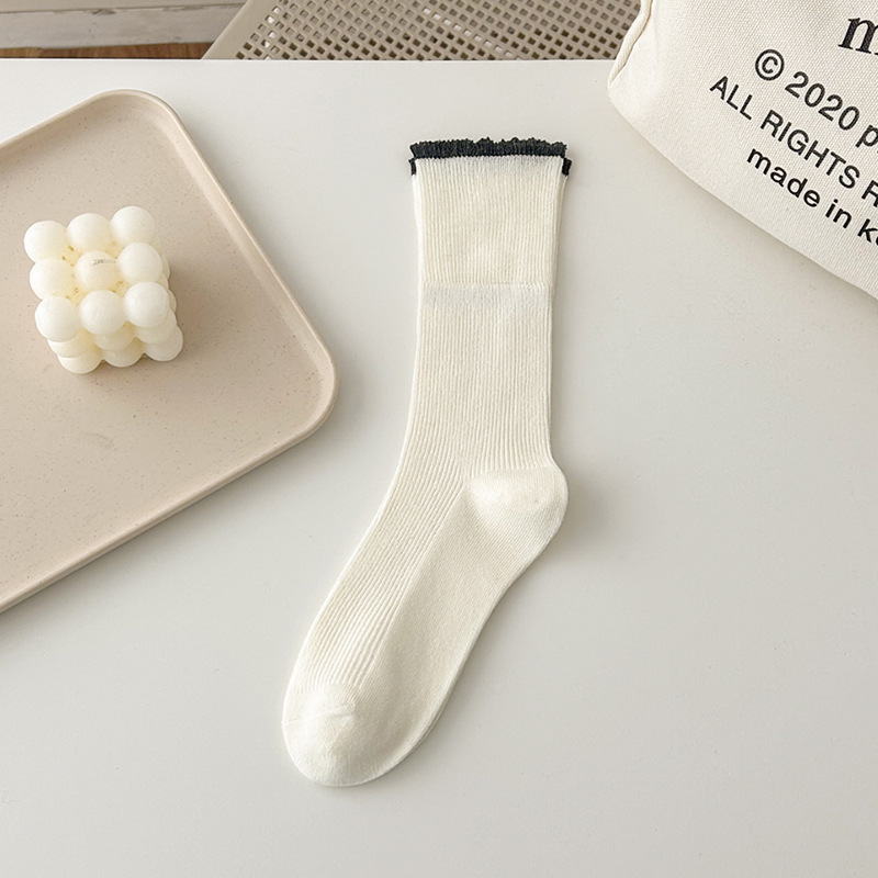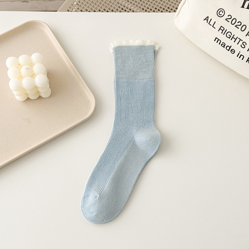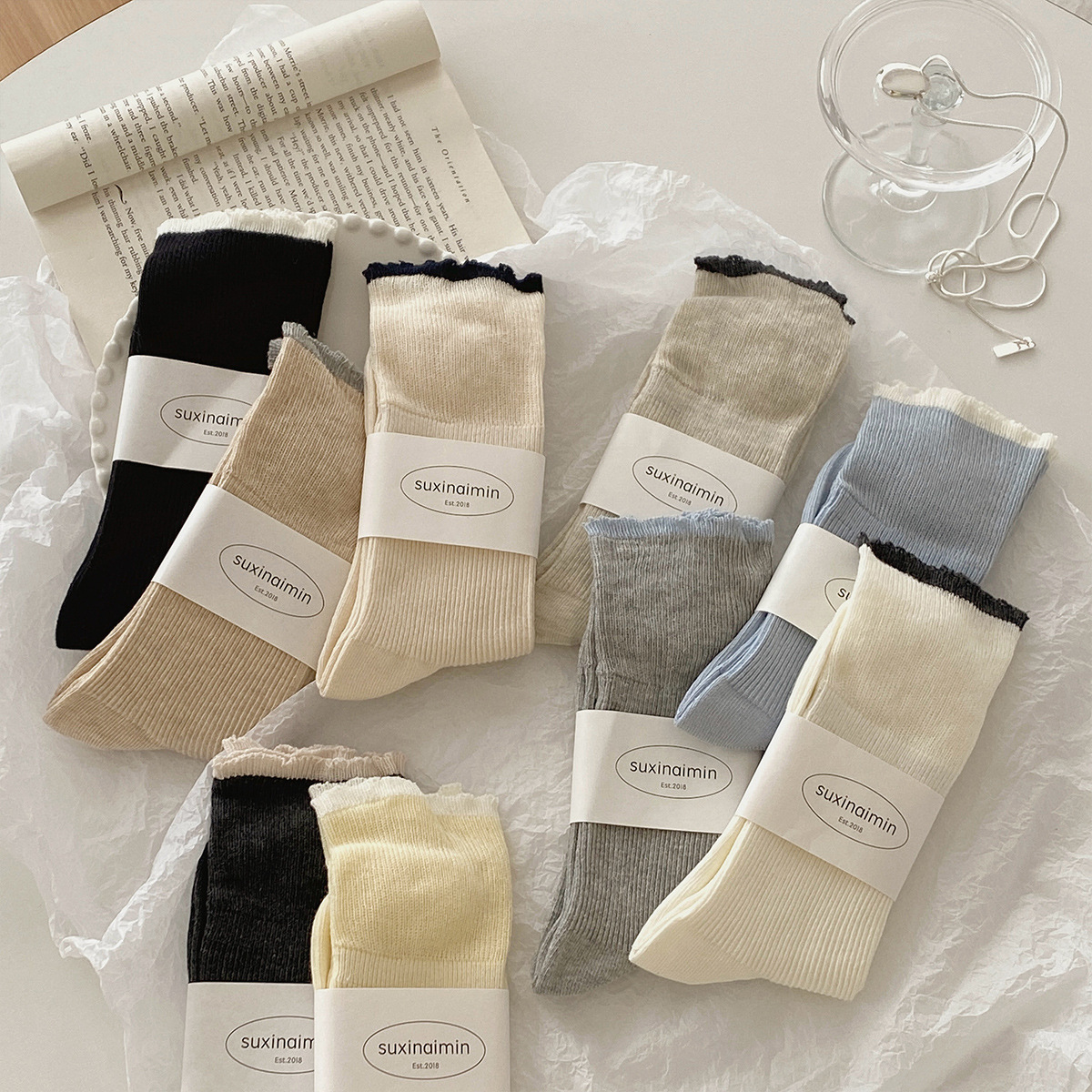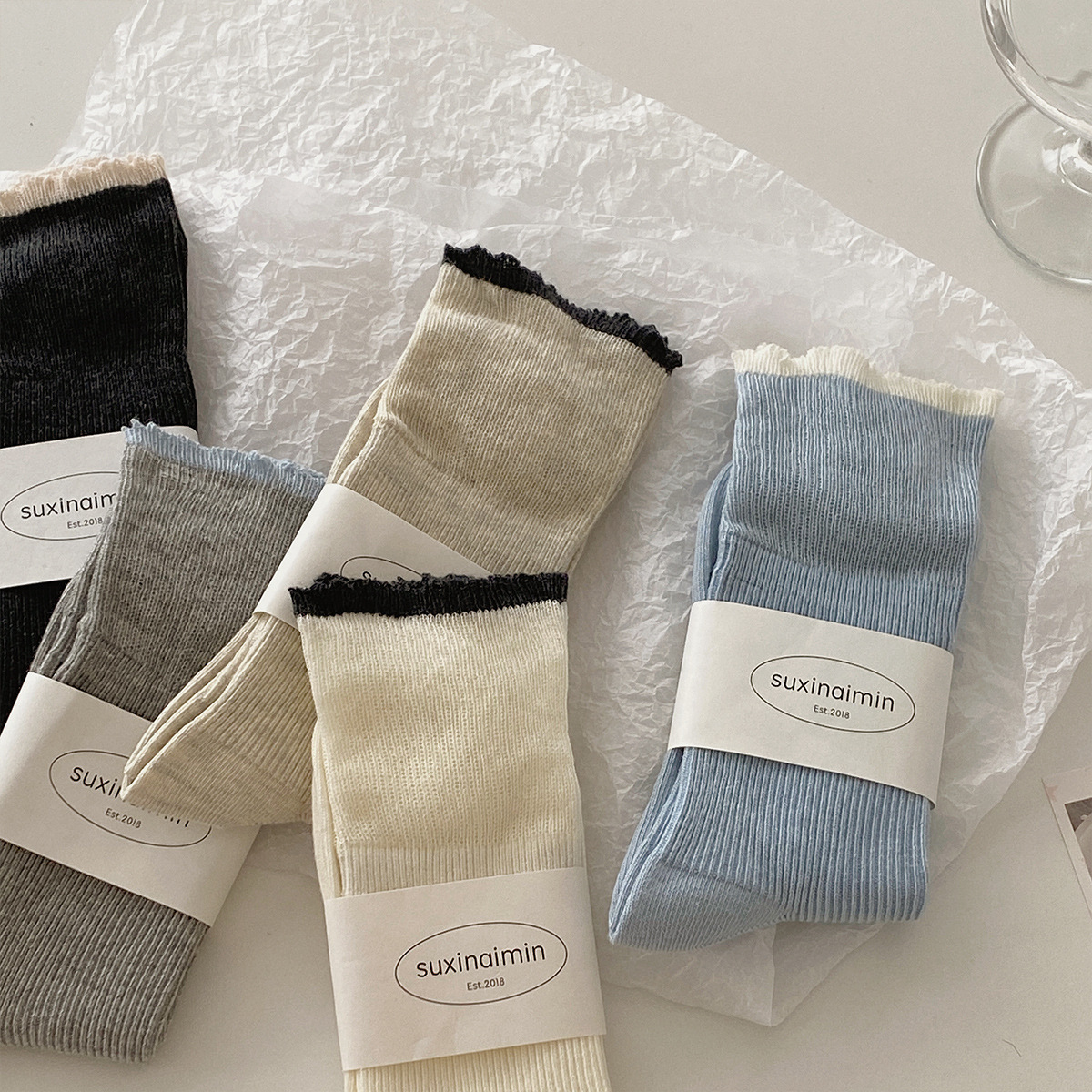 suxinaimin春夏季花边堆堆袜ins韩国撞色中筒袜日系少女翻边袜子