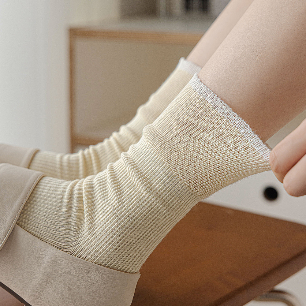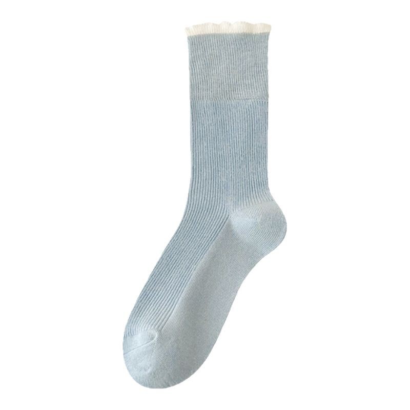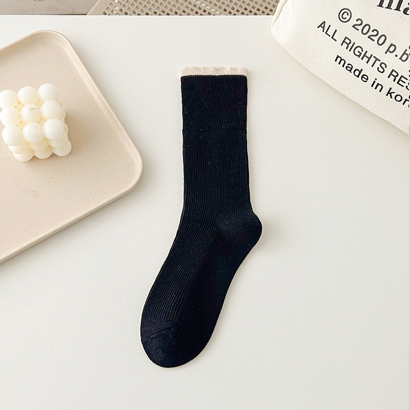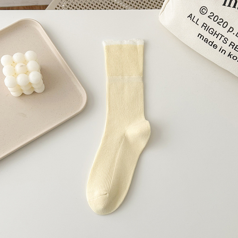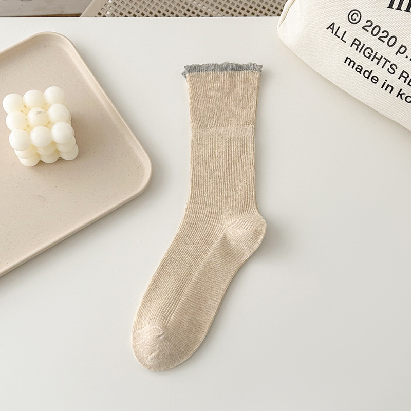 suxinaimin春夏季花边堆堆袜ins韩国撞色中筒袜日系少女翻边袜子