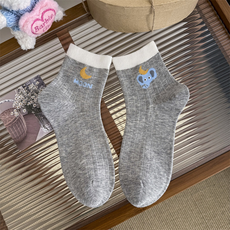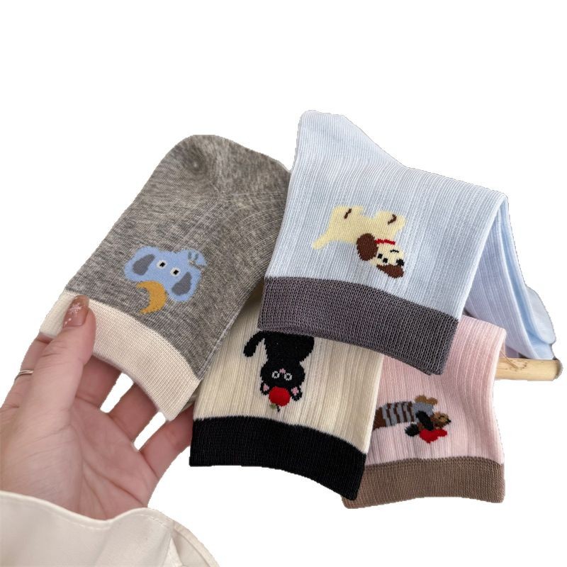 春夏薄款ab款韩版小狗短筒卡通袜子低帮棉袜中筒袜拼色腊肠狗袜子