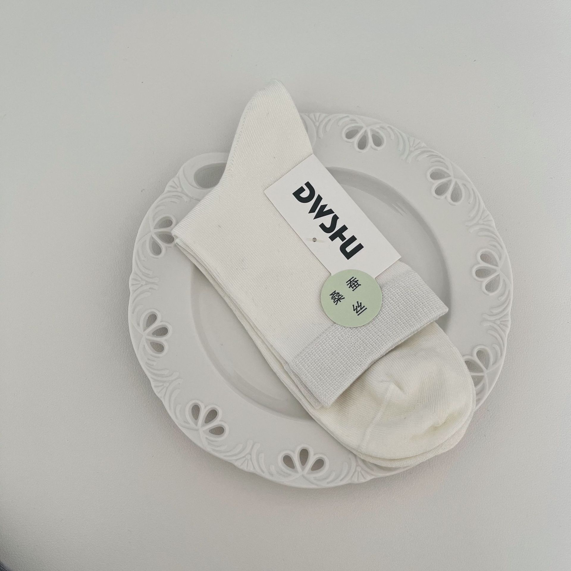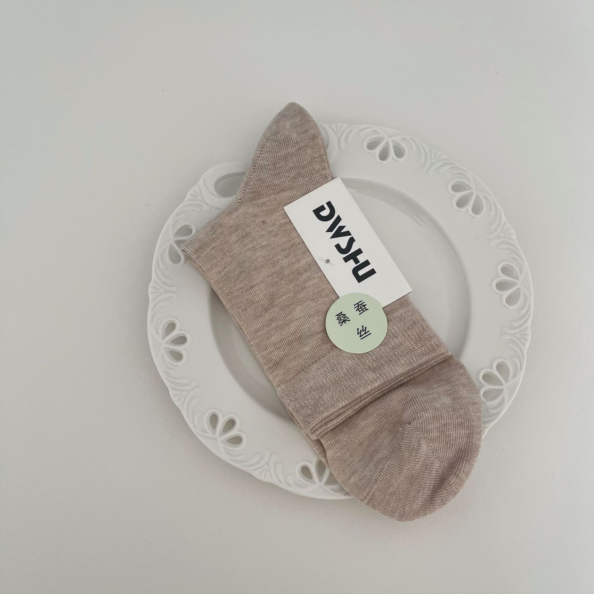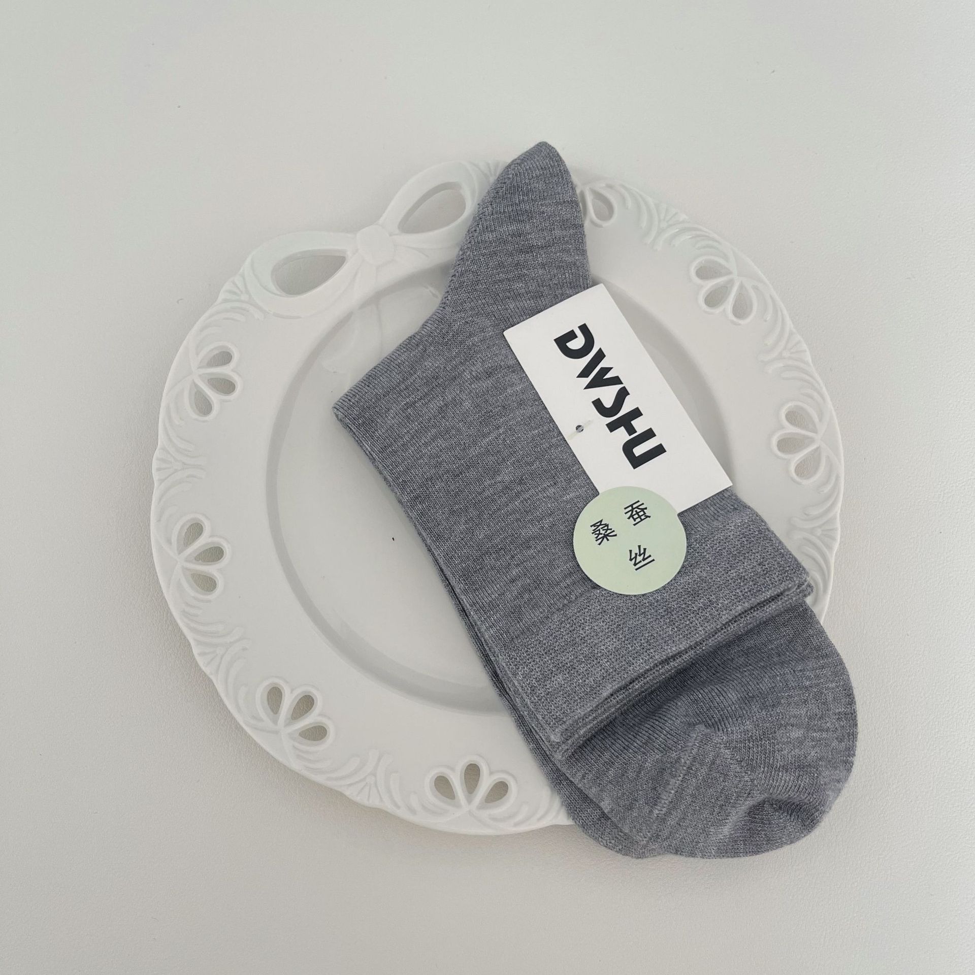 高品质春夏桑蚕丝透气无骨纯色简约男女中筒袜子透气吸汗薄款堆堆