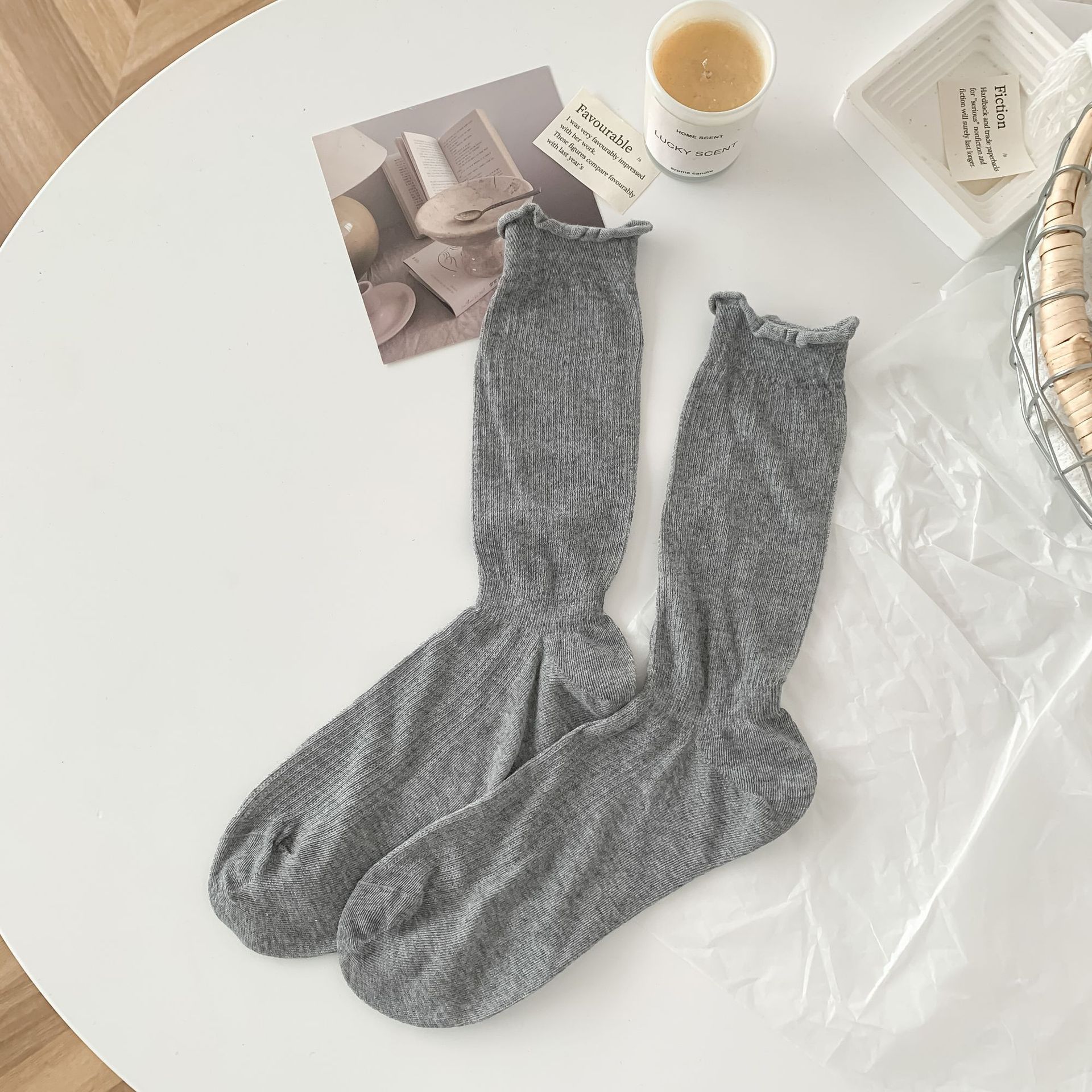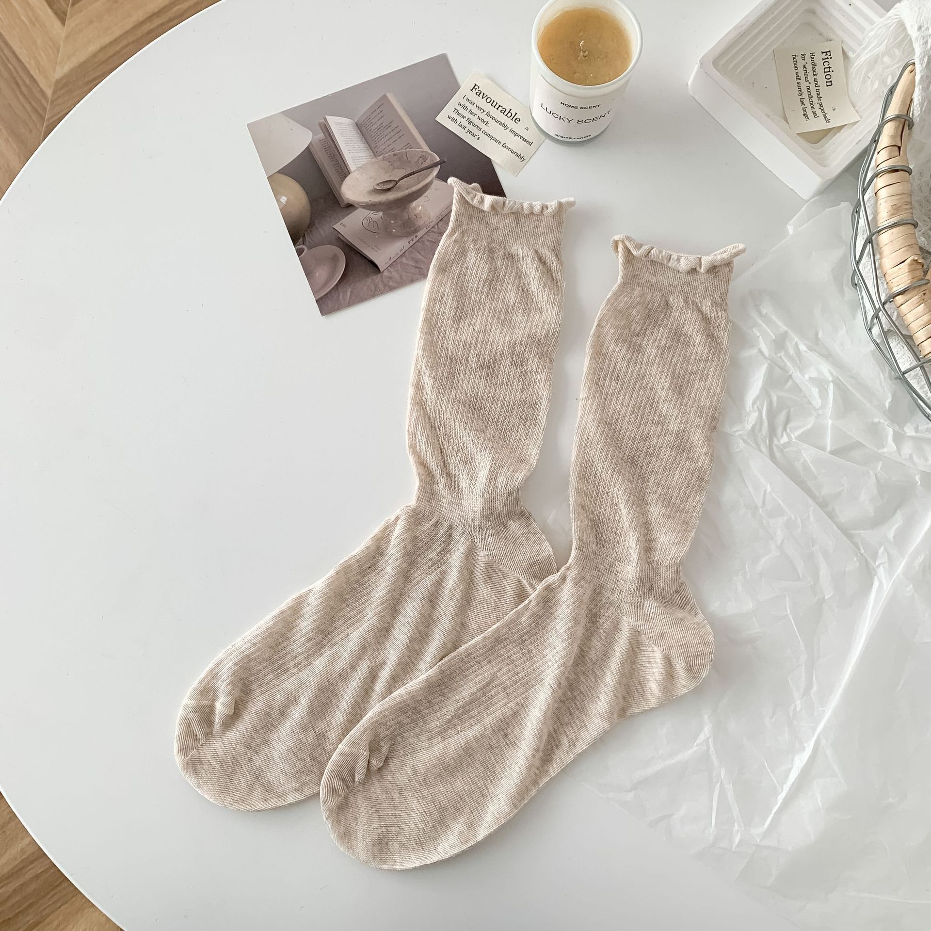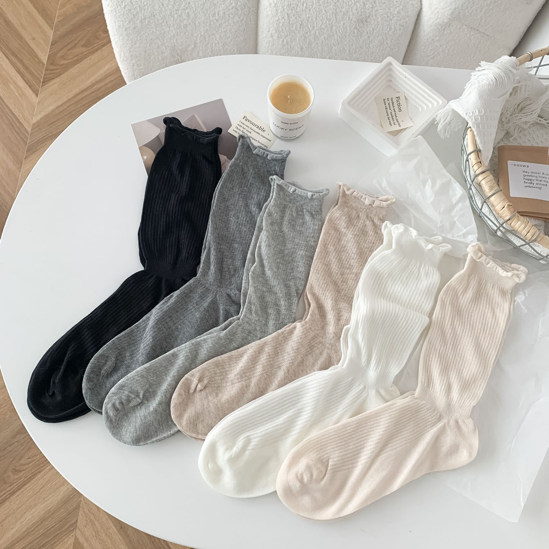 白色袜子女中筒袜夏季薄款透气镂空网眼ins芭蕾风韩版长筒堆堆袜