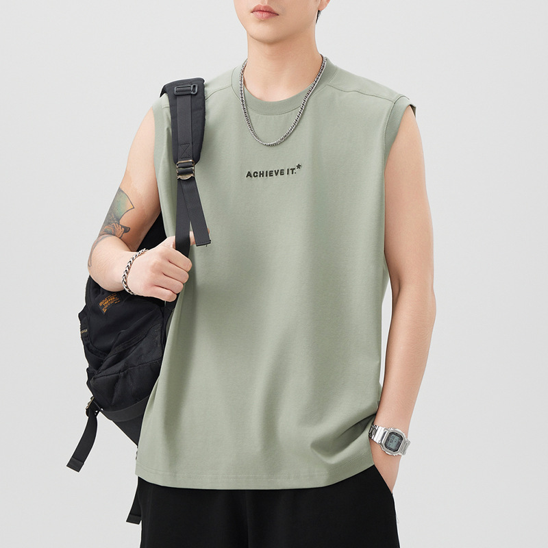 260g重磅背心男士圆领宽松无袖T恤夏季新款抗菌印花运动健身上衣