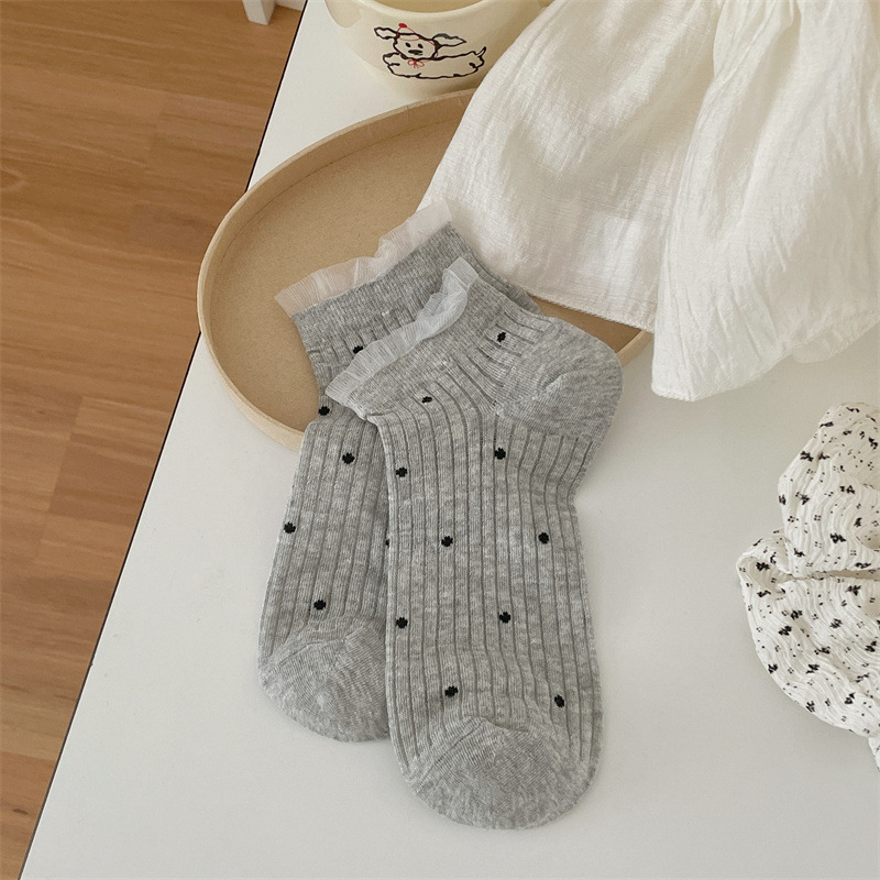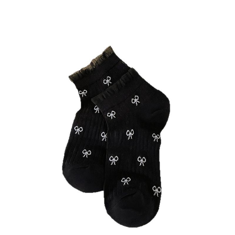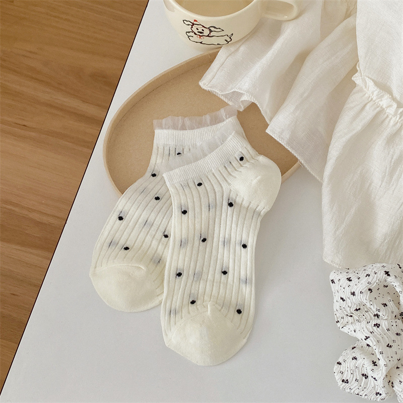 春夏新品蕾丝花边短袜子女精梳棉蝴蝶结韩版波点休闲百搭船袜