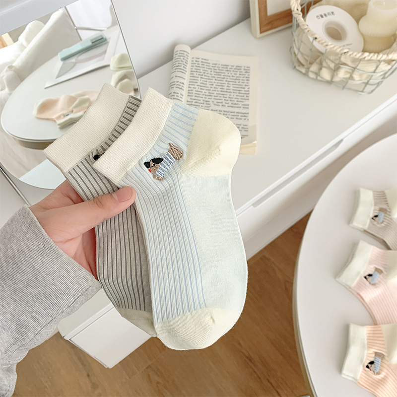 2025春夏新品 韩版ins风糖果色可爱腊肠狗卡通时尚精梳棉女士短袜