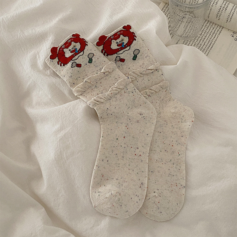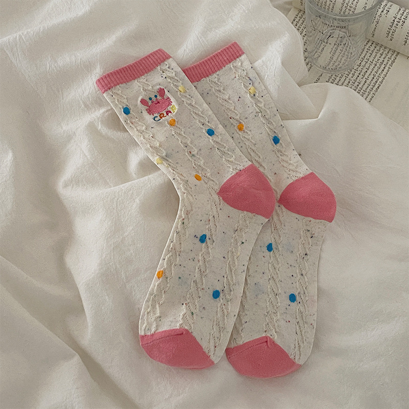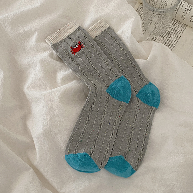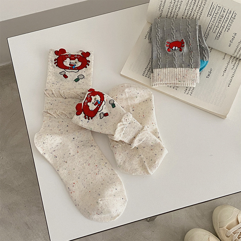 个性卡通可爱风袜子点子纱螃蟹百搭堆堆袜配勃肯鞋外穿休闲中筒袜