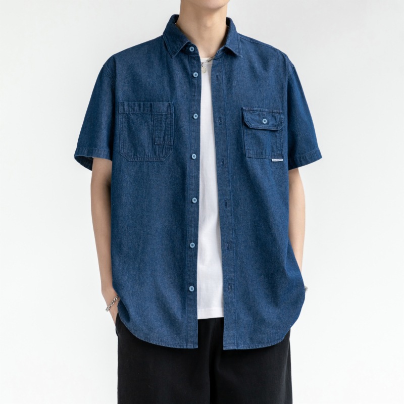 短袖男夏季新款韩版潮牌男装休闲牛仔衬衣衣服工装外套潮男士衬衫