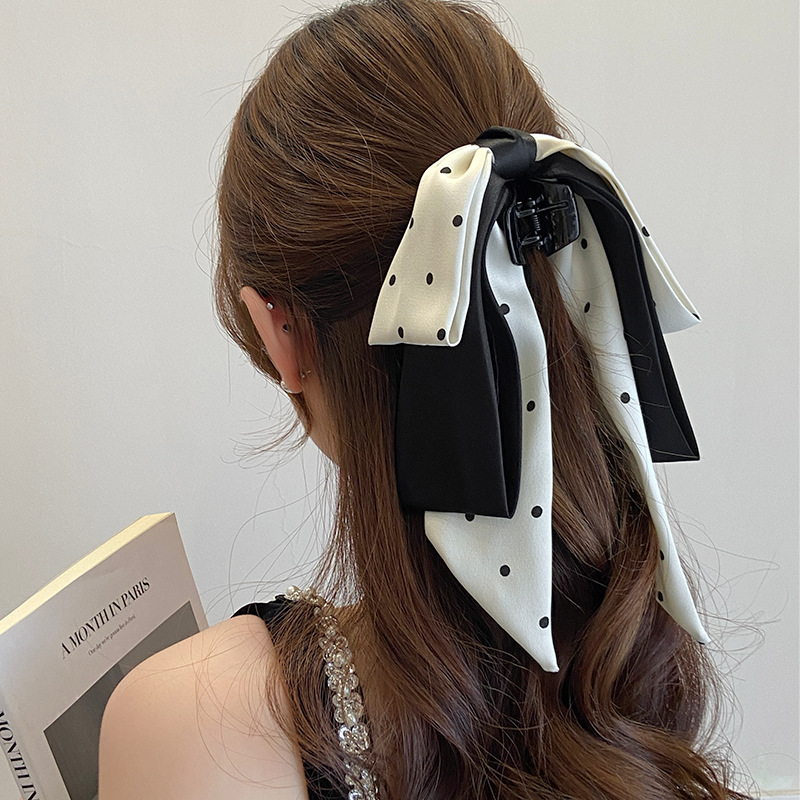 高级感新中式古风飘带蝴蝶结马尾抓夹优雅后脑勺半扎发抓夹鲨鱼夹