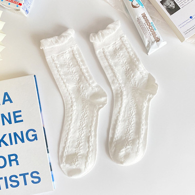 春夏白色袜子女中筒袜JK风薄款可爱软妹学院日系棉纯色中筒袜