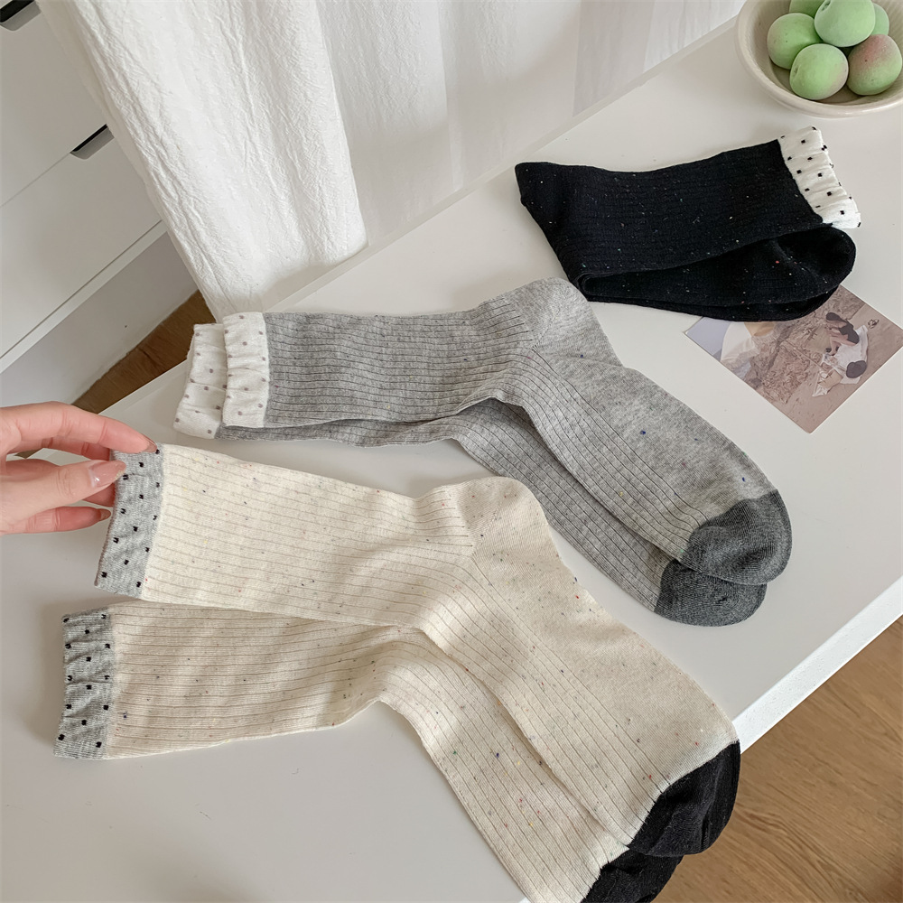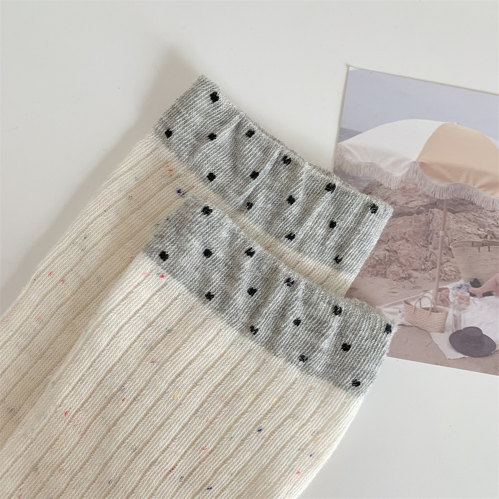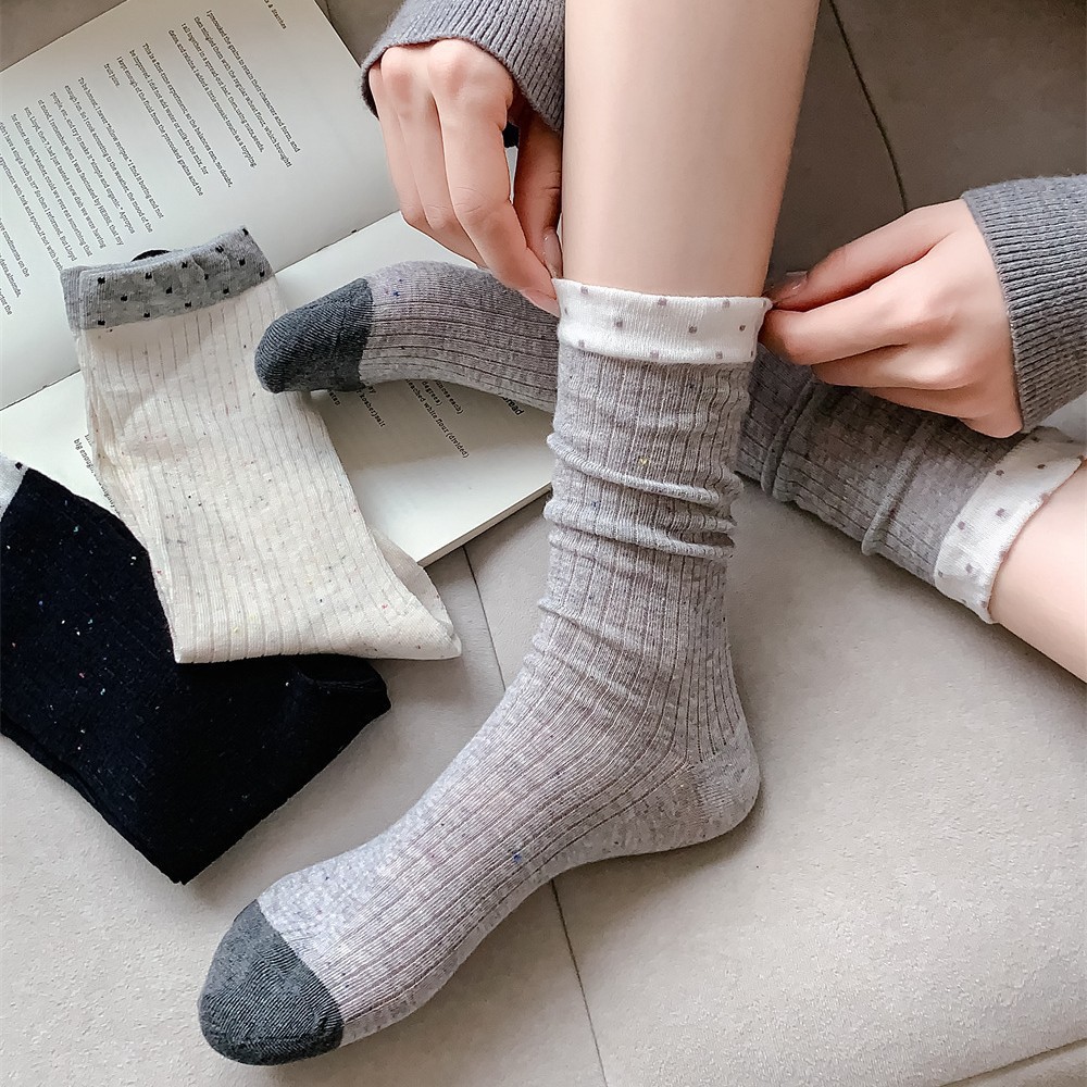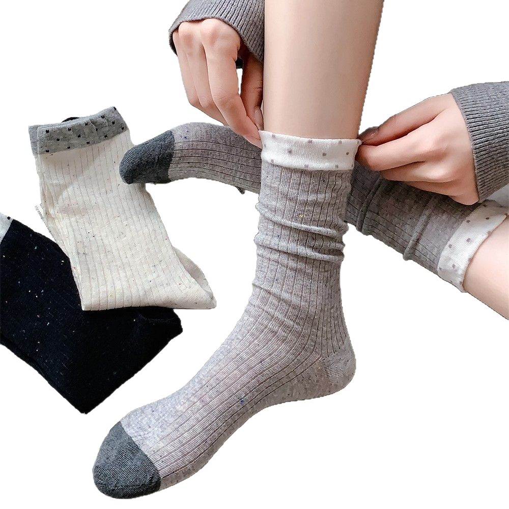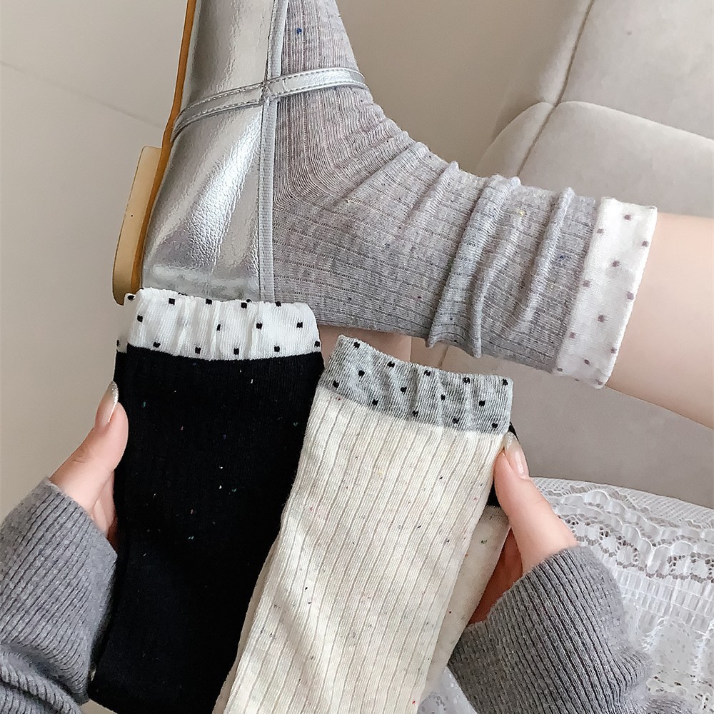 春夏季日系薄款点子纱女中筒堆堆wa~简约百搭黑色均码灰色白色棉
