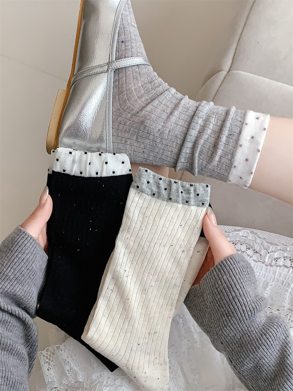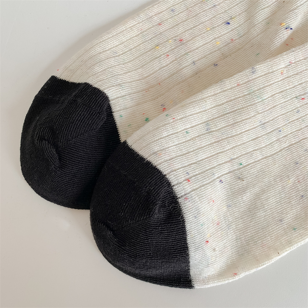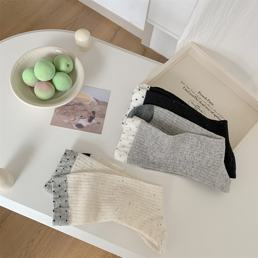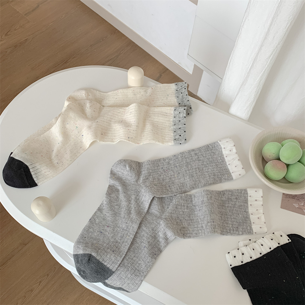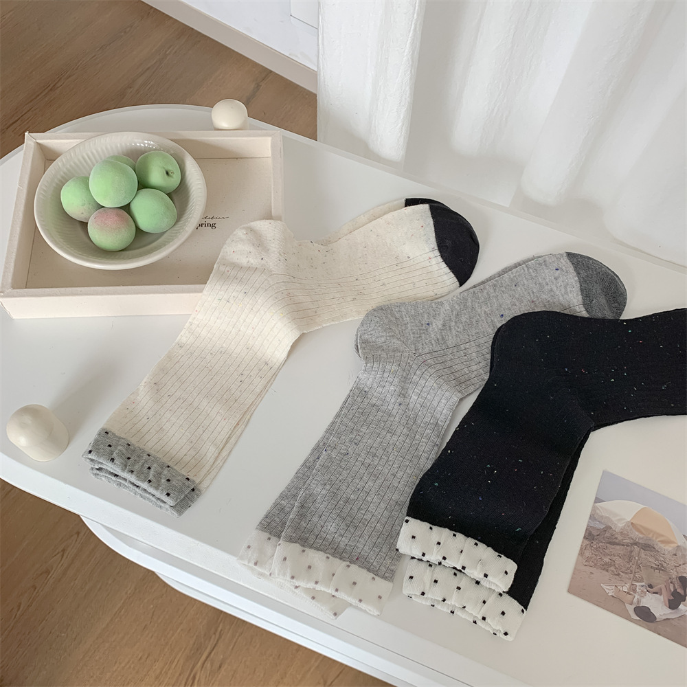 春夏季日系薄款点子纱女中筒堆堆wa~简约百搭黑色均码灰色白色棉