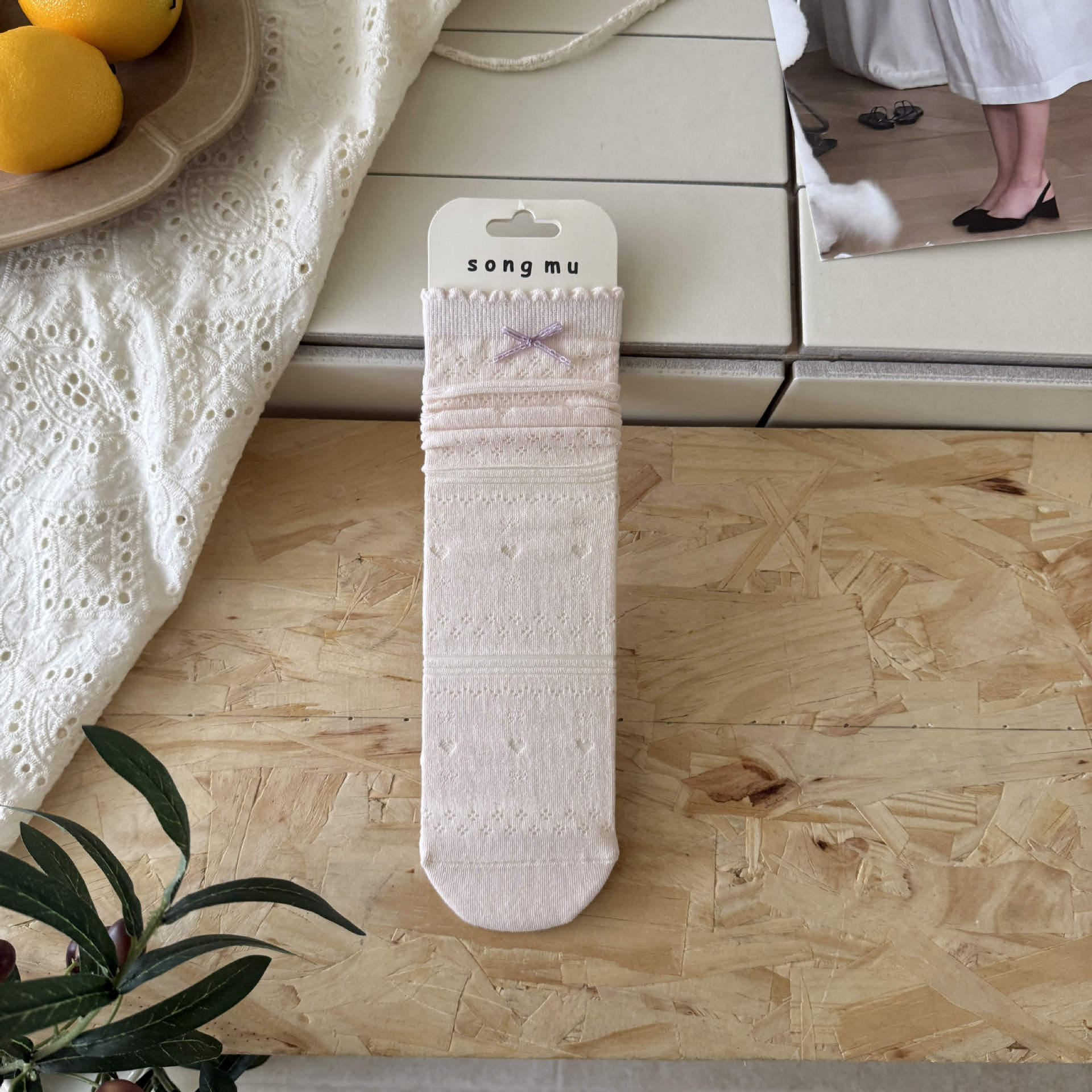 Songmu‘薄透费尔岛韩国ins博主同款堆堆袜纯色甜美蝴蝶结袜子女
