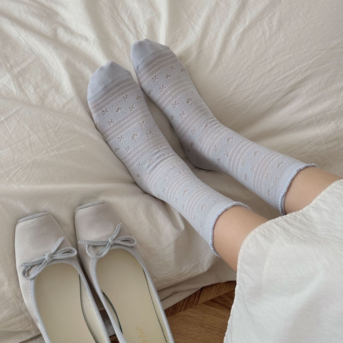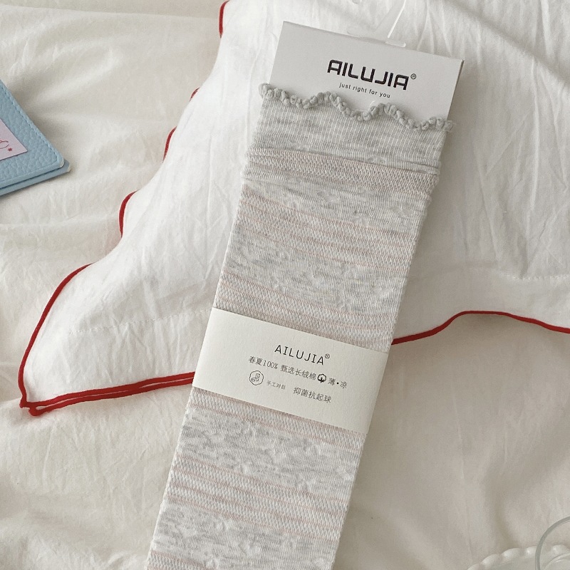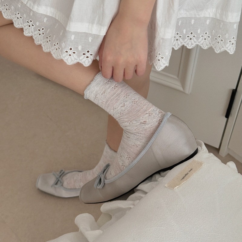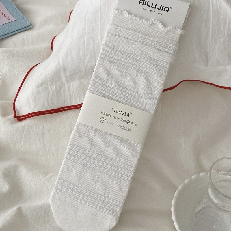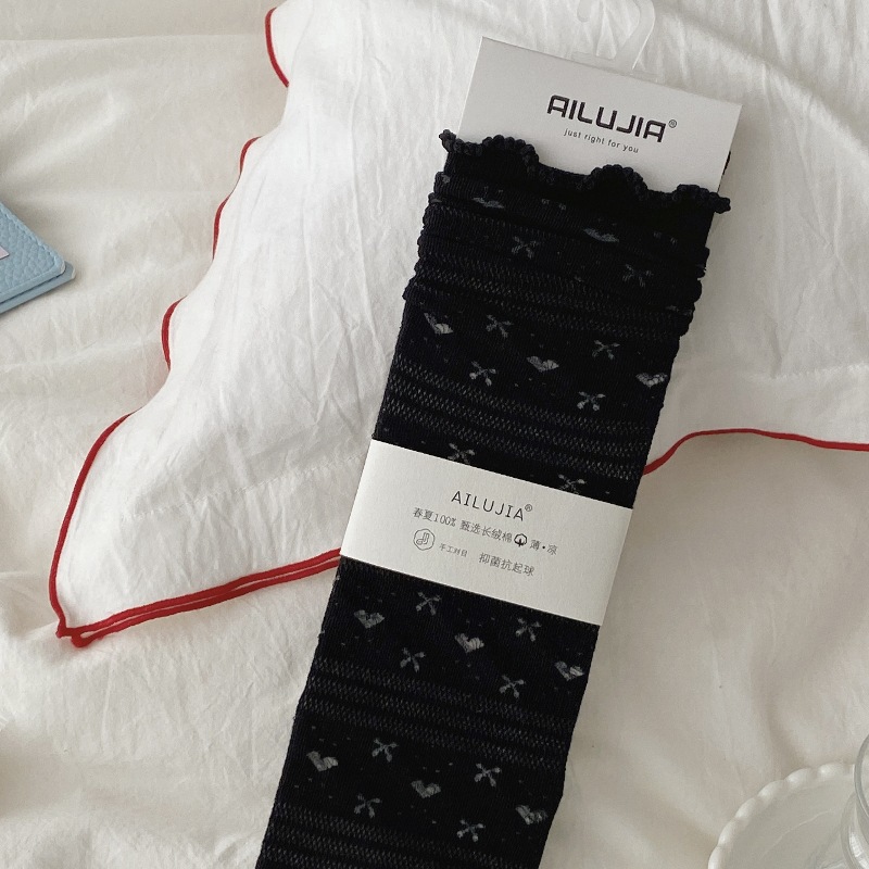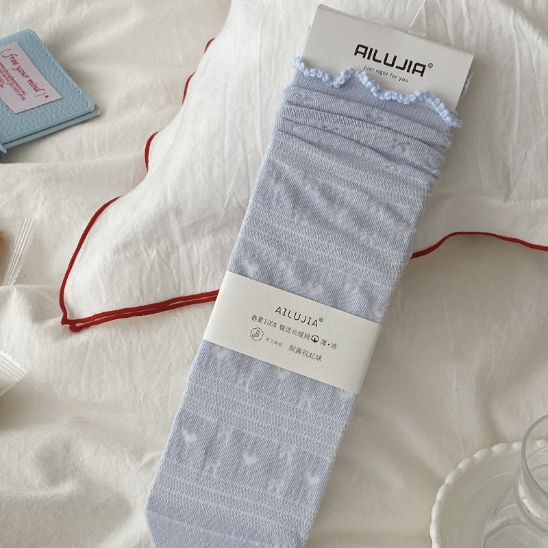 夏季薄款一体机无骨缝头纯色堆堆袜木耳边韩版镂空网眼爱心蝴蝶结