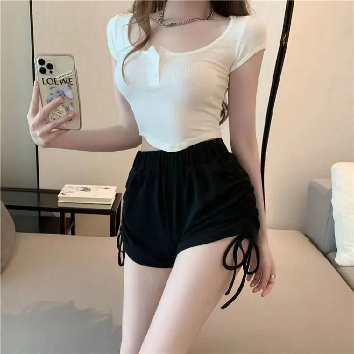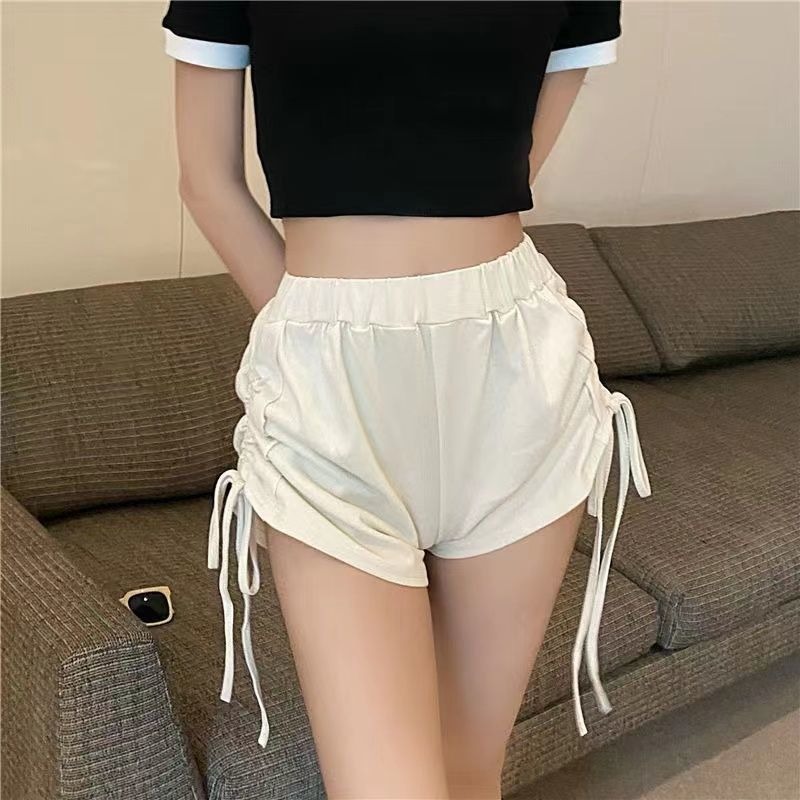夏季短裤女高腰显瘦阔腿裤设计感抽绳辣妹热裤居家外穿休闲女
