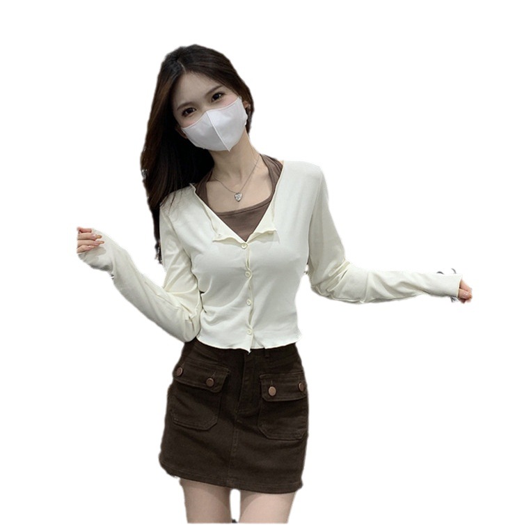 8570# 满天星 已出货 罗纹 假两件 早春季纯欲挂脖内搭设计感T恤
