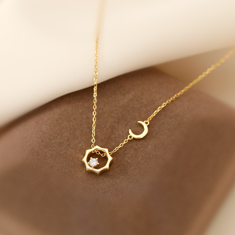 韩国爆款新品ins风星月颈链高级感太阳镶钻吊坠925纯银项链女饰品