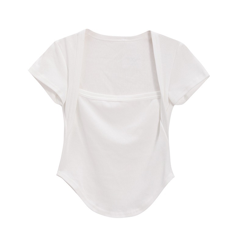 白色方领短袖T恤女装夏季新款辣妹纯欲修身设计感上衣打底衫