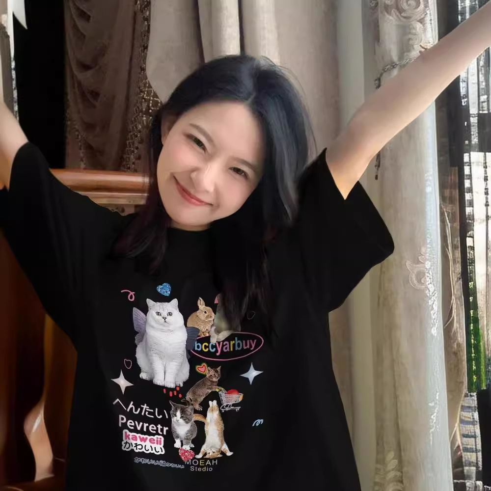 纯棉大码短袖t恤女新款夏季灰色设计感小众美式宽松半袖上衣