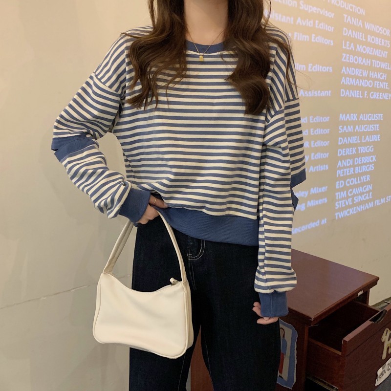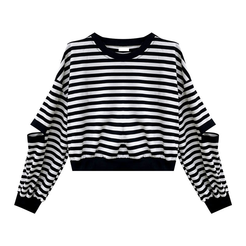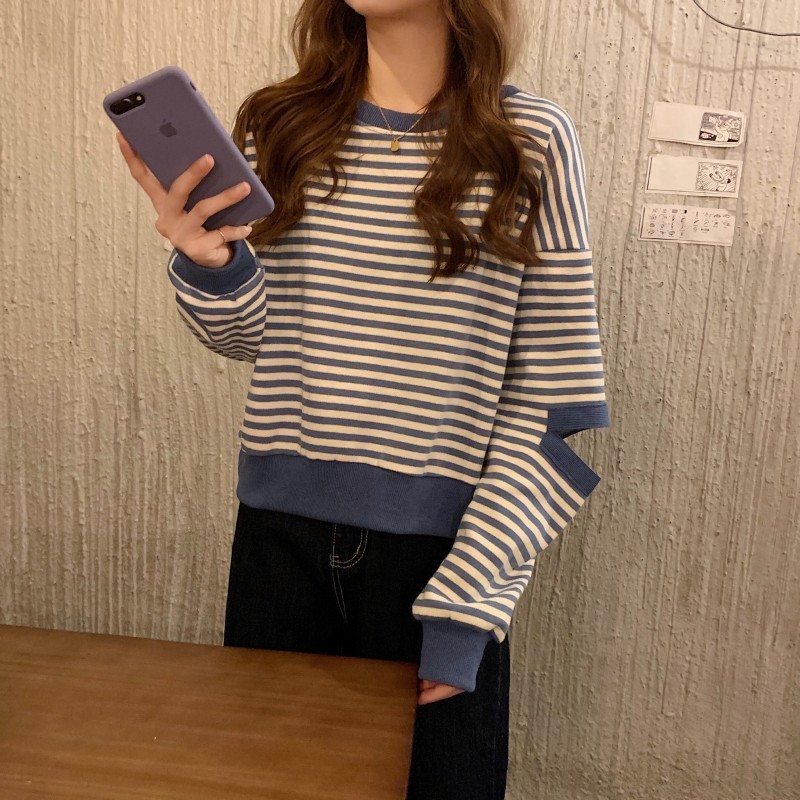 条纹长袖薄款卫衣女装秋季新款设计感时尚洋气别致学生上衣潮