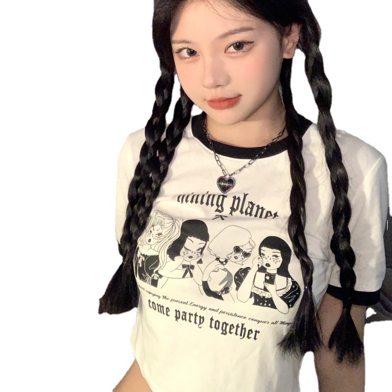 甜辣妹风短袖T恤女装夏季新款设计感修身露脐短款上衣服学生