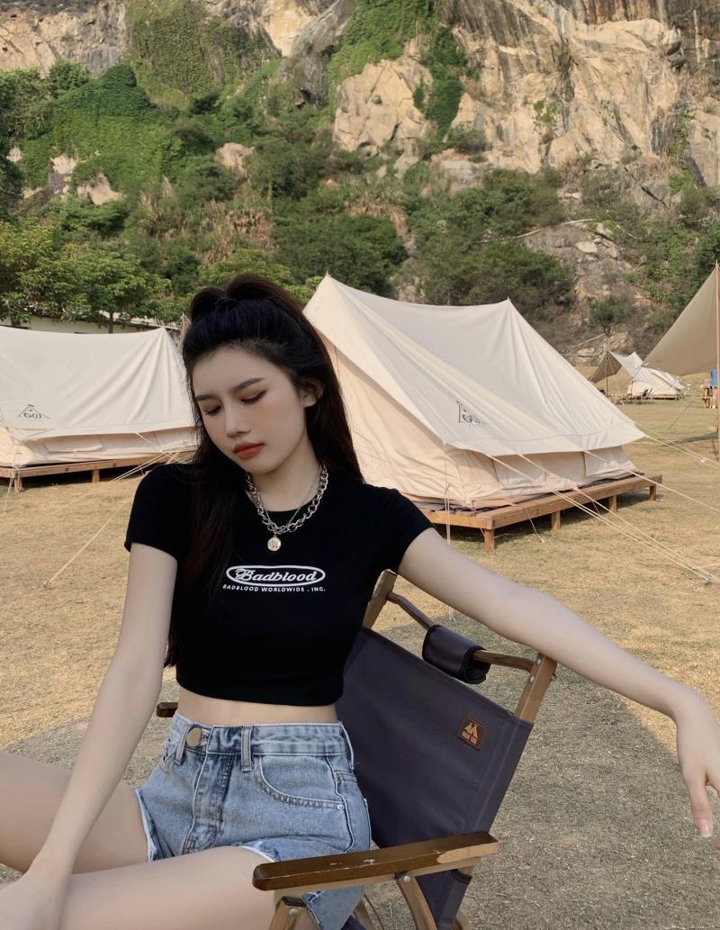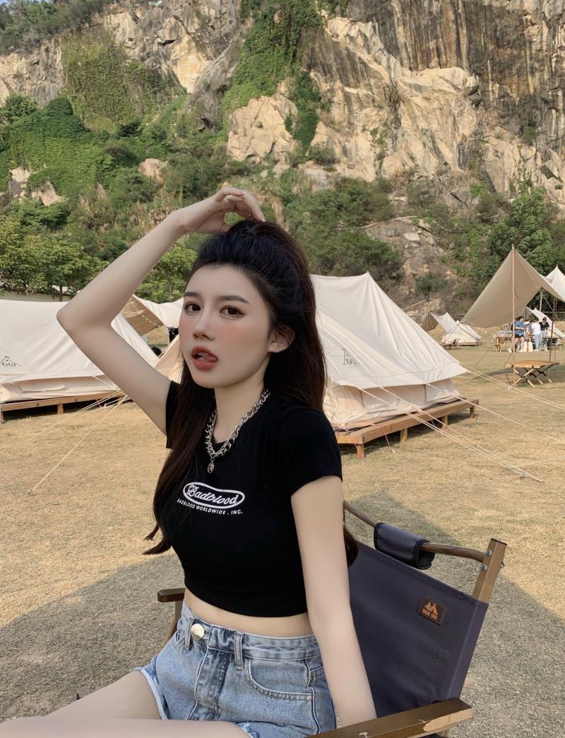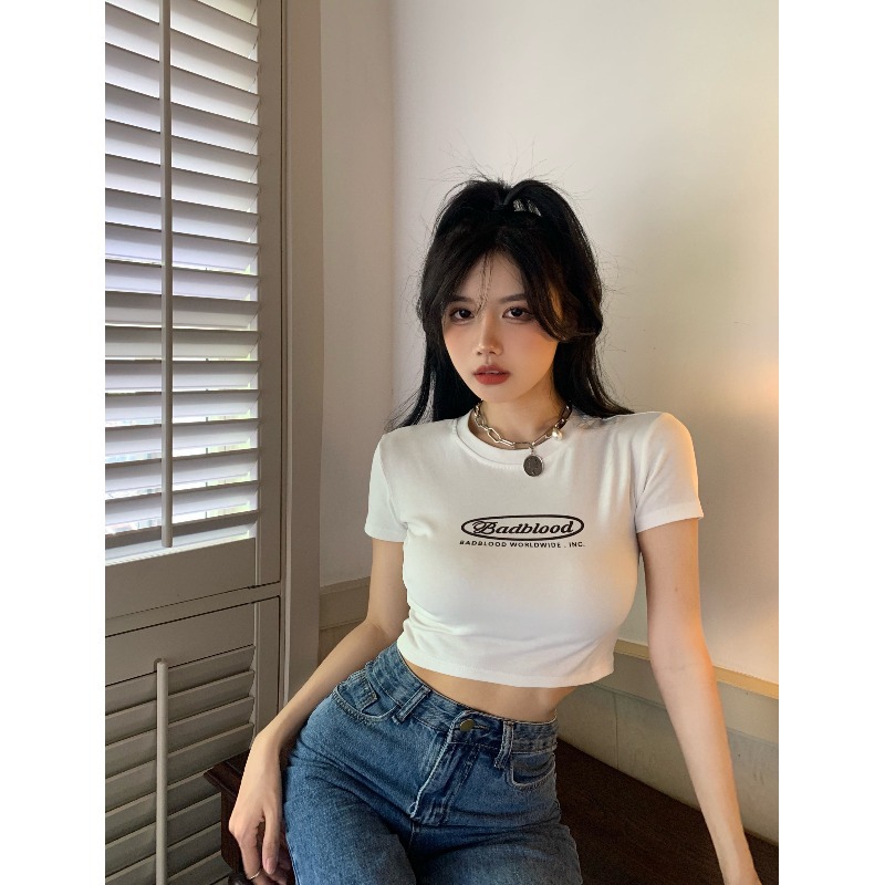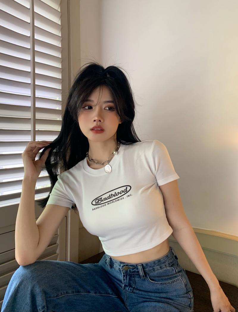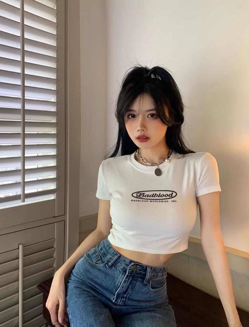 黑色字母印花短款T恤女年夏季新款修身显瘦百搭辣妹短袖上衣