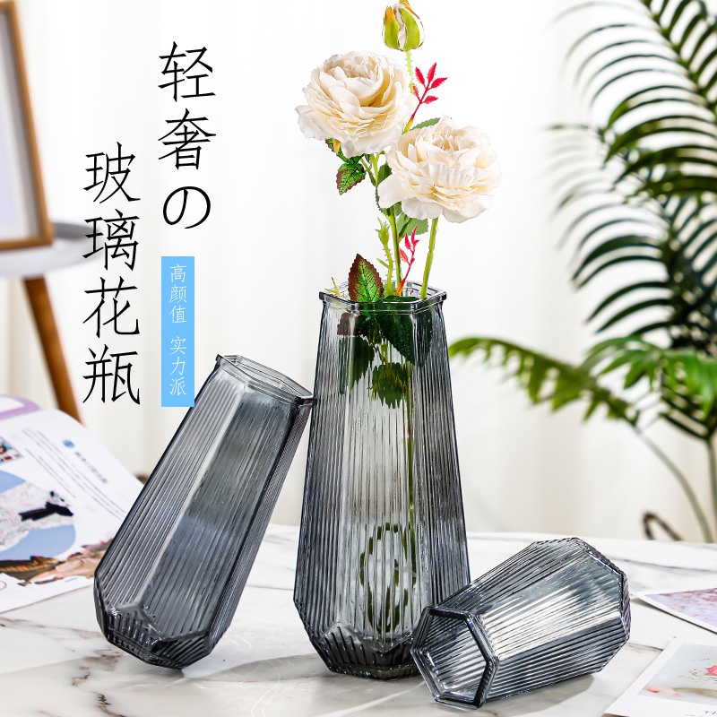 玻璃花瓶带提手便携花瓶家庭客庭插花瓶水培花瓶