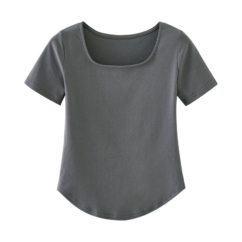 2024夏季设计感小众纯欲风甜辣妹u领正肩短袖t恤女不规则短款上衣