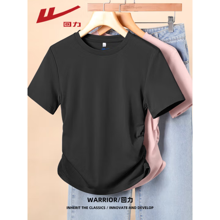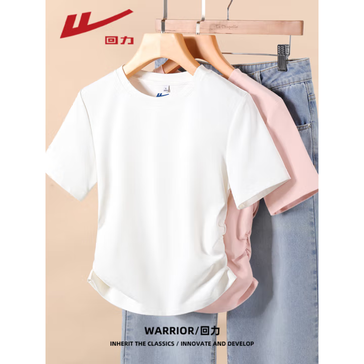 回力显瘦掐腰正肩抽褶短袖t恤打底衫女2025夏季新款休闲简约百搭