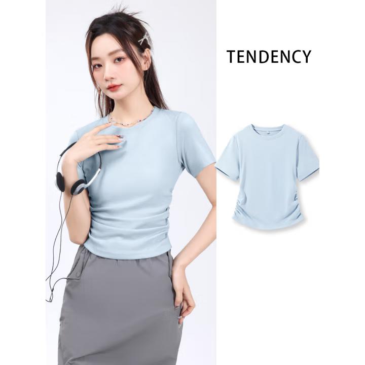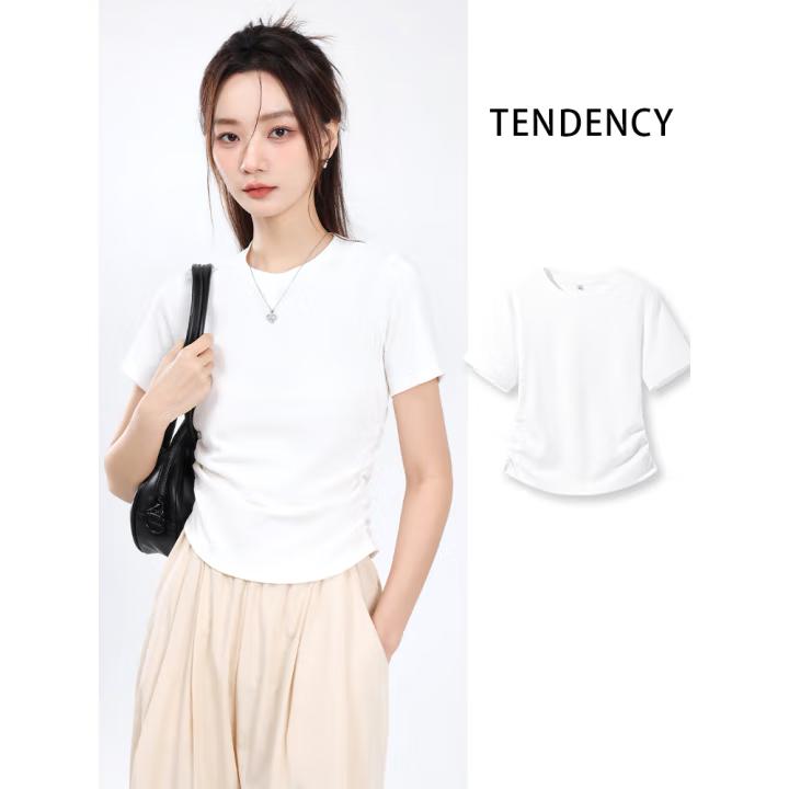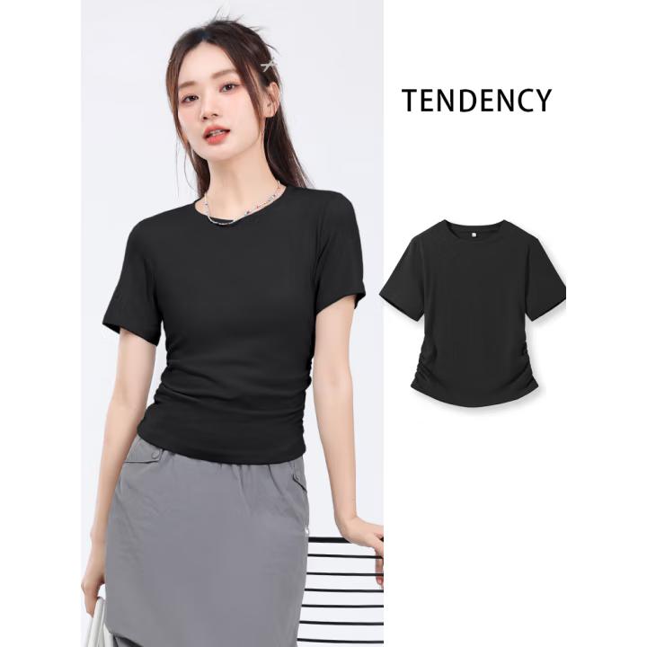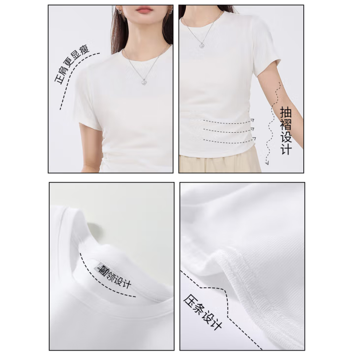 正肩短袖T恤女2025年夏季紧身收腰显瘦辣妹风小个子短款