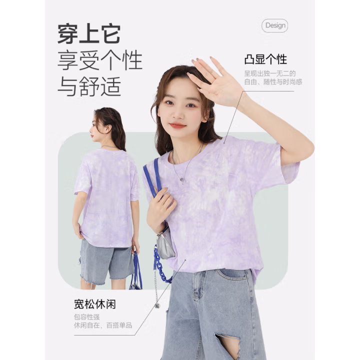 回力紫色扎染纯棉短袖t恤女2025夏季多巴胺时尚宽松休闲
