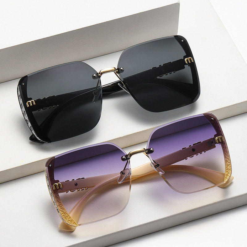 新款时尚切边太阳镜半框高品质潮流简约墨镜女细闪边框眼镜