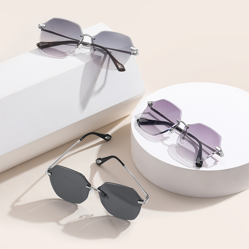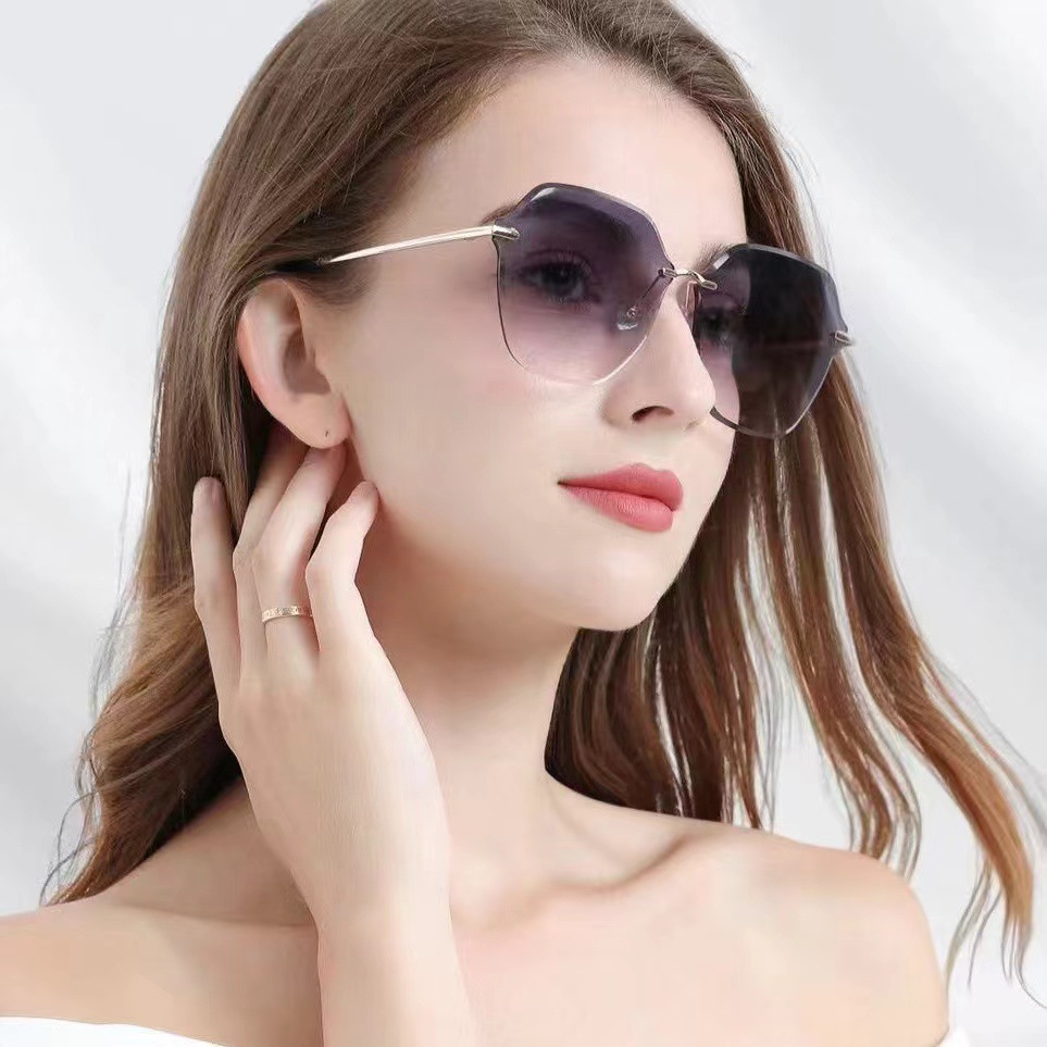 新款无框切边墨镜女防紫外线偏光墨镜时尚太阳眼镜高级感显脸小