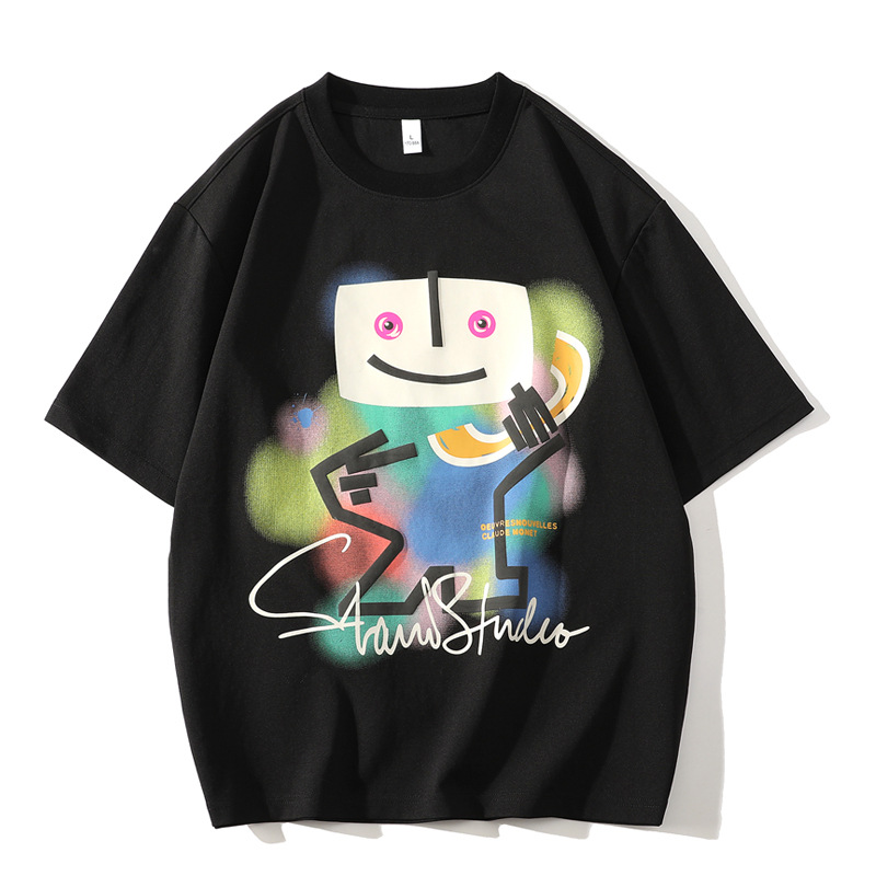 男士短袖T恤夏季薄款印花休闲男装上衣服冰丝薄款体恤新款