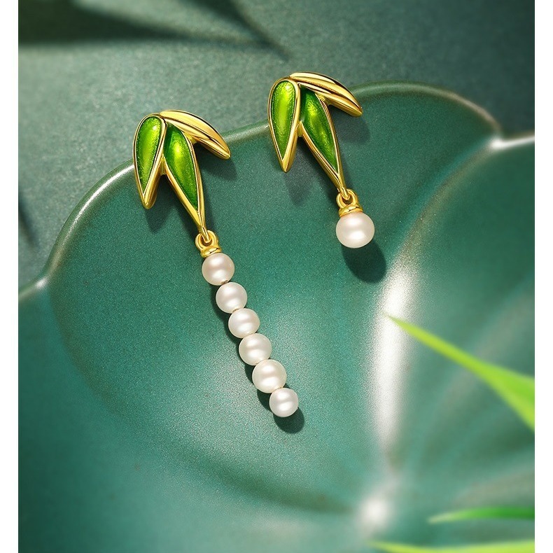 花韵系列-竹涟 S925银珍珠耳钉耳饰不对称烤漆时尚礼物女