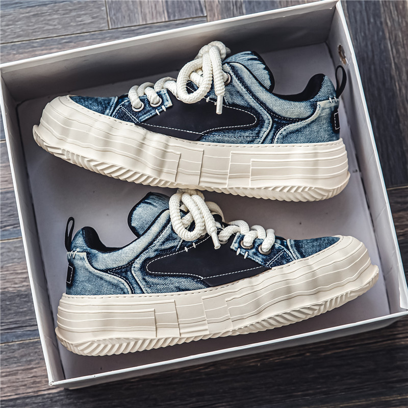四季款款牛仔不规则厚底运动直播帆布小众港风休闲户外鞋男板