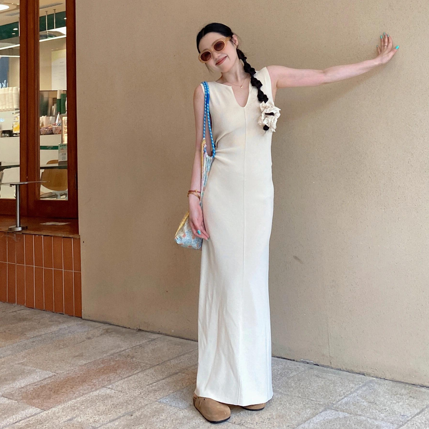 法式优雅气质极简白色连衣裙女春夏高级感无袖打底长款针织包臀裙