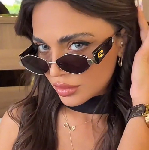 跨境新款菱形眼镜时尚网红墨镜金属多边形复古个性小框遮阳太阳镜