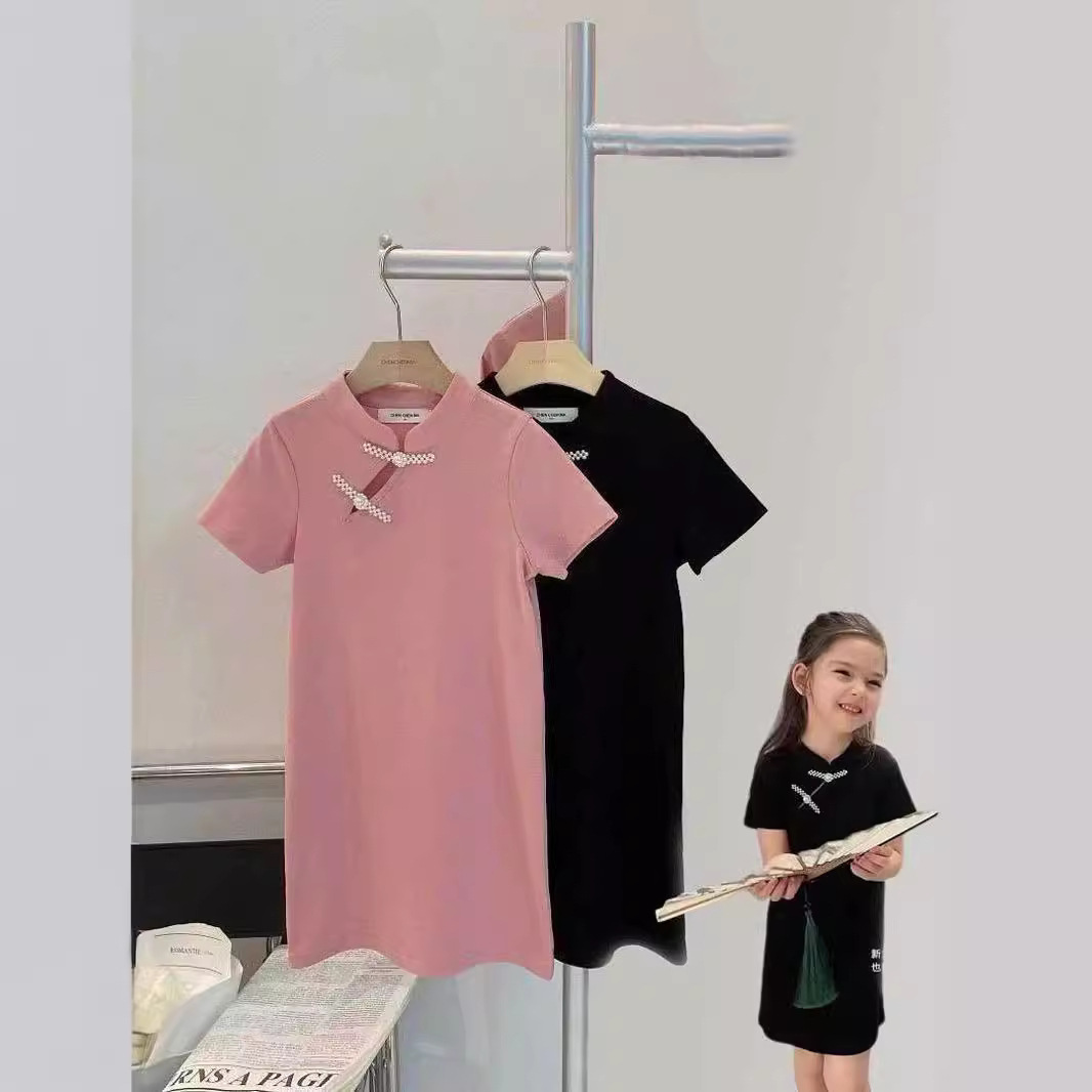 新品女童年夏季新款小女孩洋气连衣裙子女宝宝2025古风珍珠扣旗袍