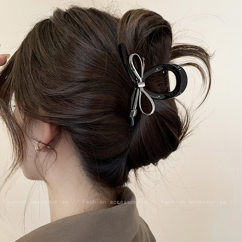 蝴蝶结抓夹女后脑勺发夹盘发百搭韩系气质ins高级感金属鲨鱼夹
