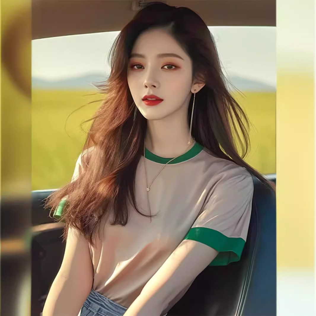 2025夏季新款纯棉灰色短袖t恤女宽松百搭休闲时尚减龄小个子上衣