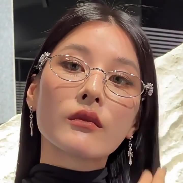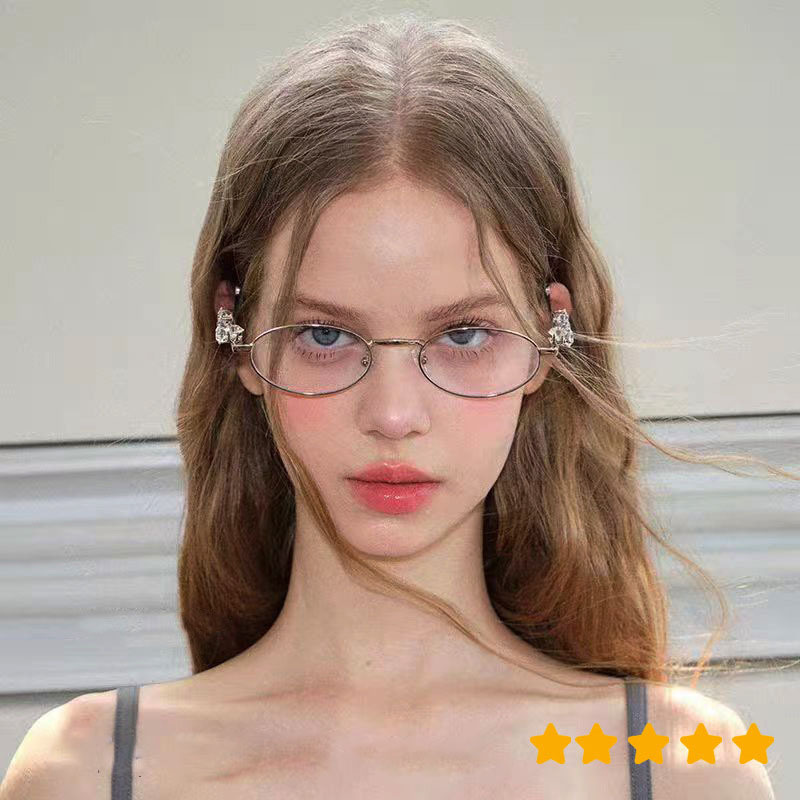 2025新款镶钻椭圆形眼镜欧美高级感防晒太阳镜素颜神器平光镜