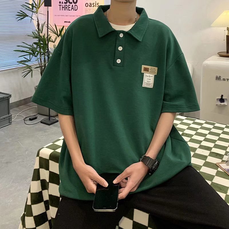 贴标设计感短袖男潮牌polo衫夏季青少年半袖宽松港风百搭中袖t恤