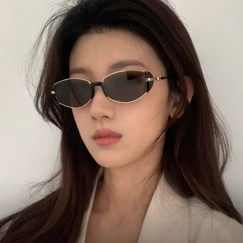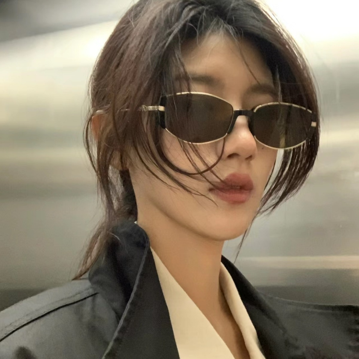 2025新摩登复古高级感茶色窄框小棕镜女方圆脸显瘦猫眼墨镜太阳镜