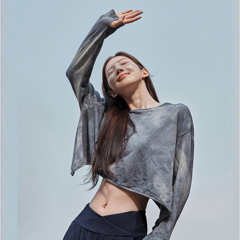 新款扎染瑜伽罩衫性感气质宽松显瘦透气长袖T恤跑步健身训练上衣