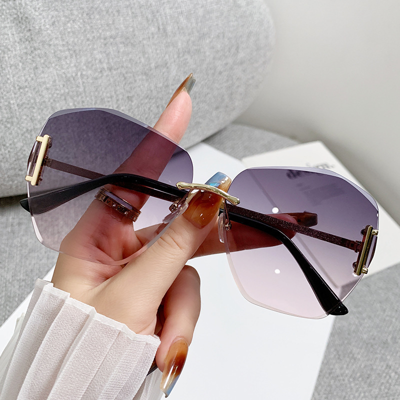 新款无框多边形墨镜女高级感防紫外线眼镜时尚大脸显瘦素颜太阳镜