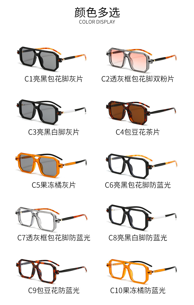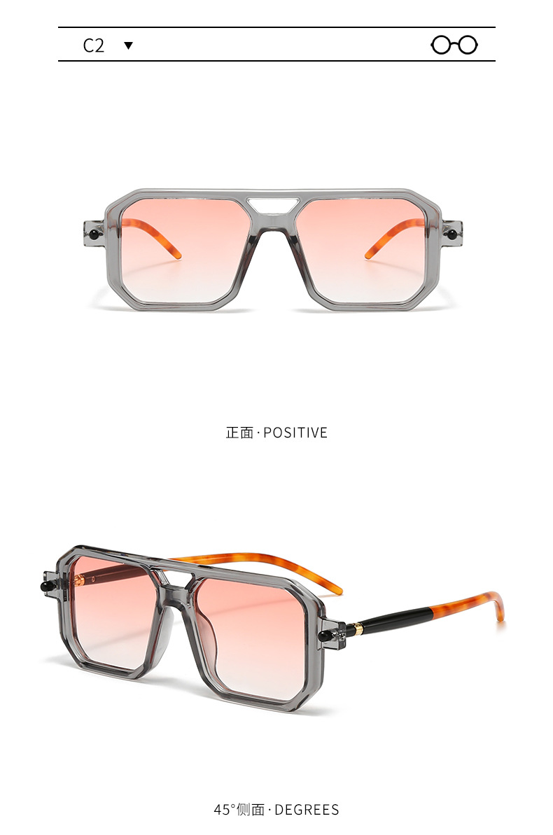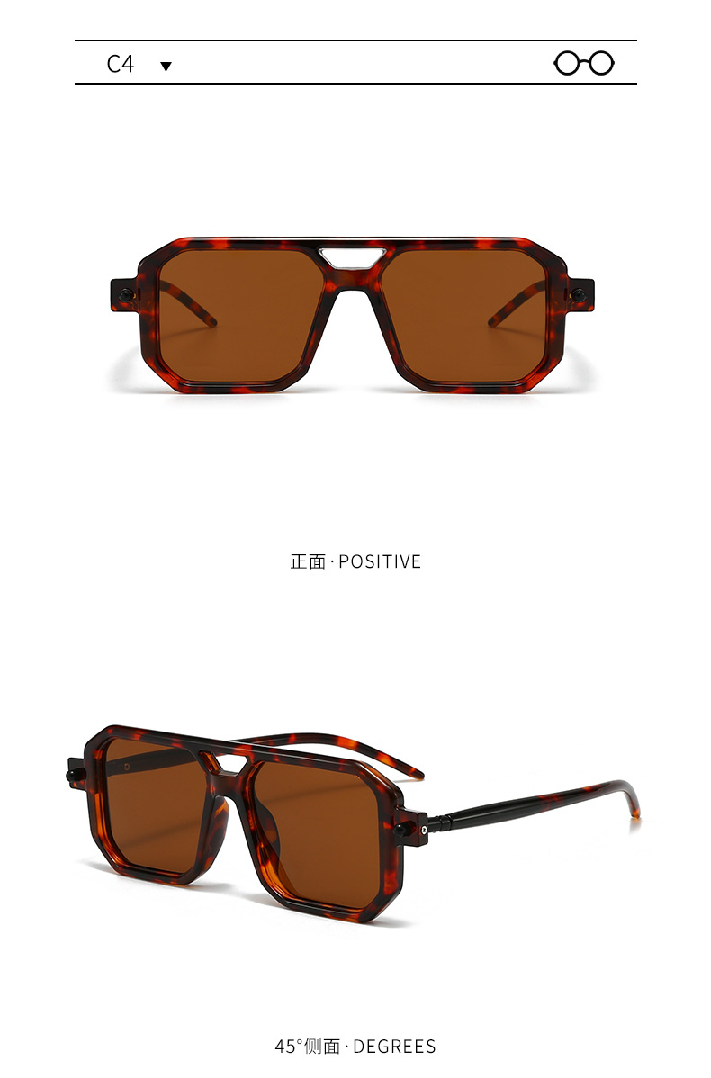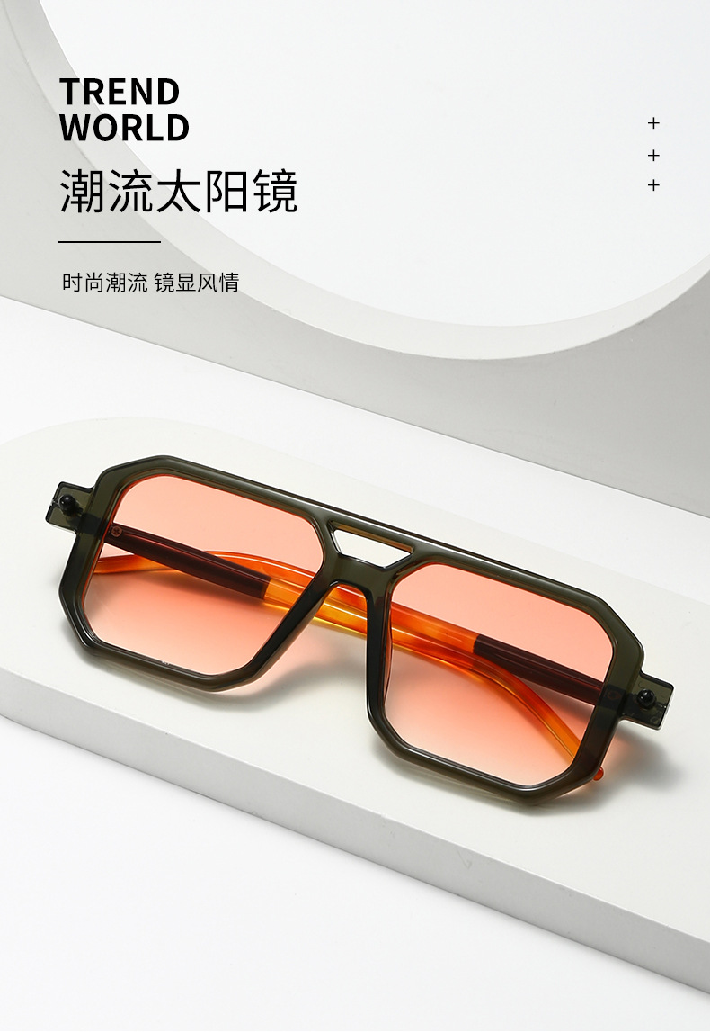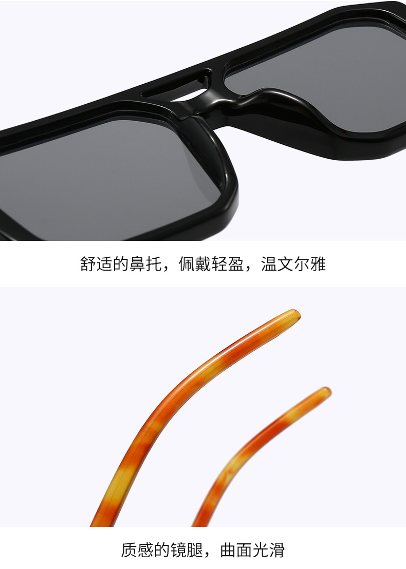 新款跨境太阳眼镜欧美时尚街拍方形大框墨镜潮双梁复古摆拍太阳镜