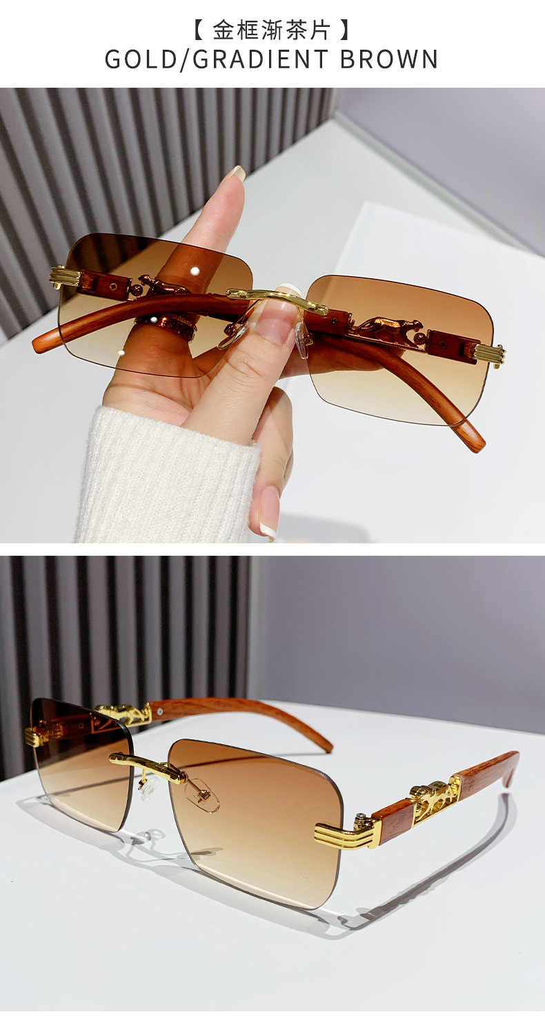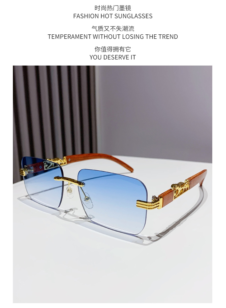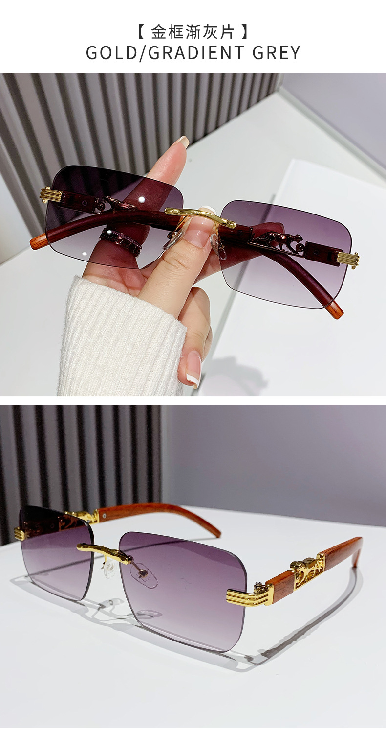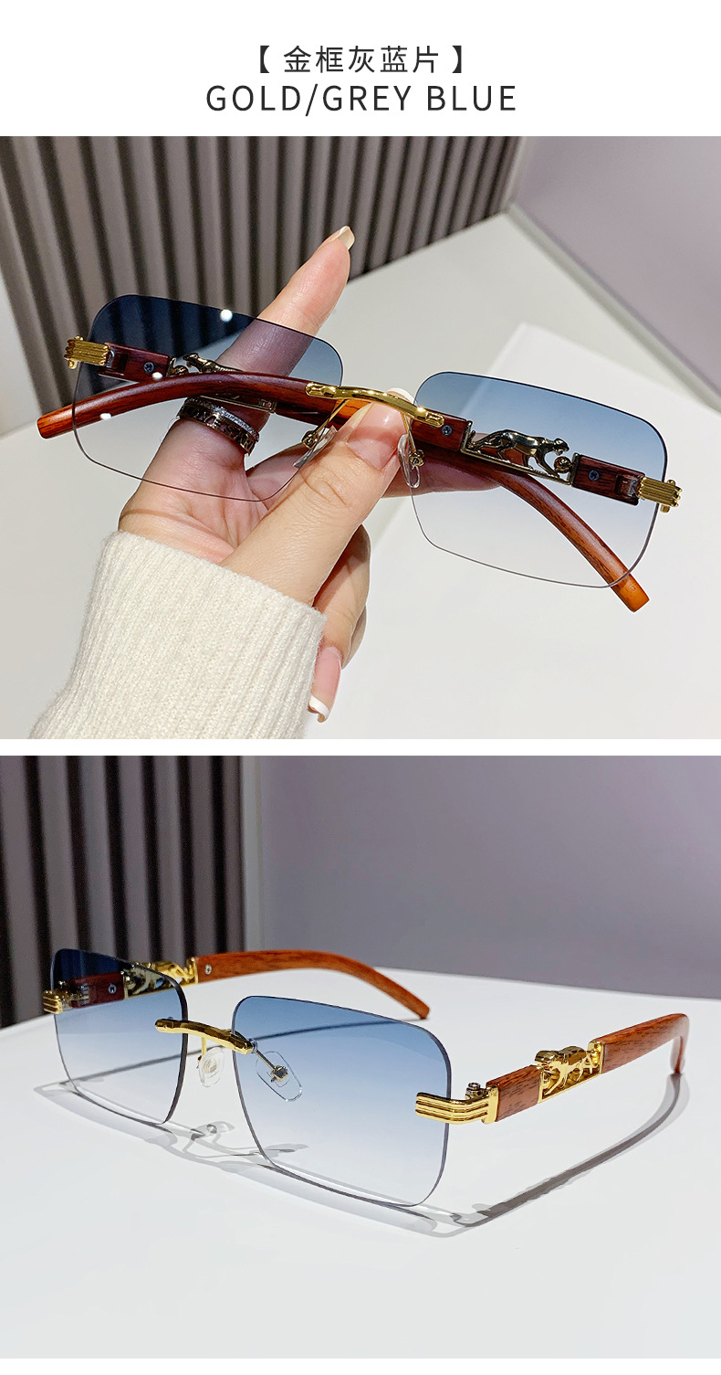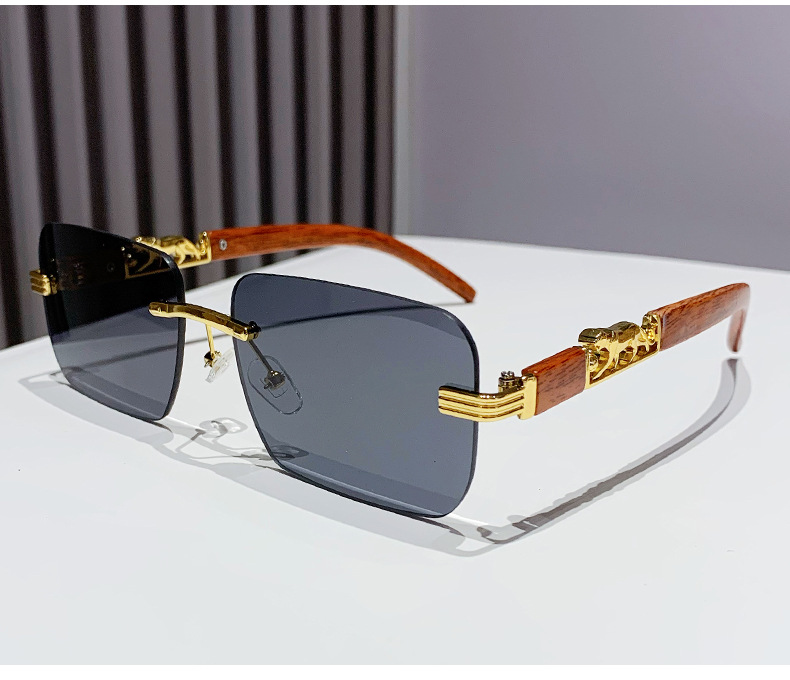木纹豹子头太阳镜女新款潮流无框切边男士方框太阳眼镜潮墨镜