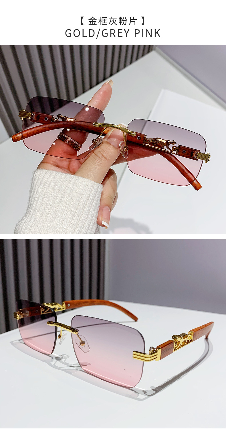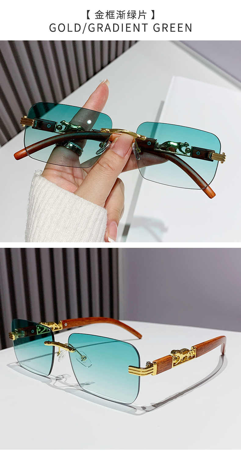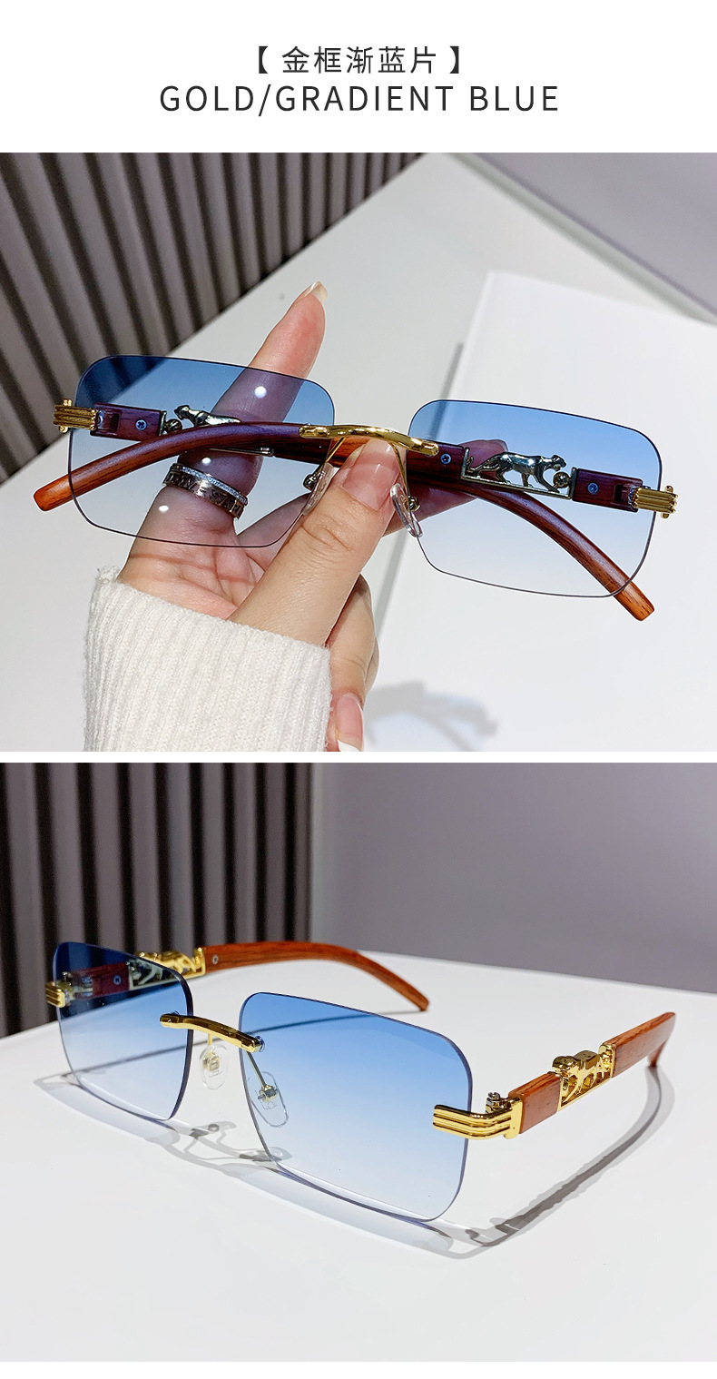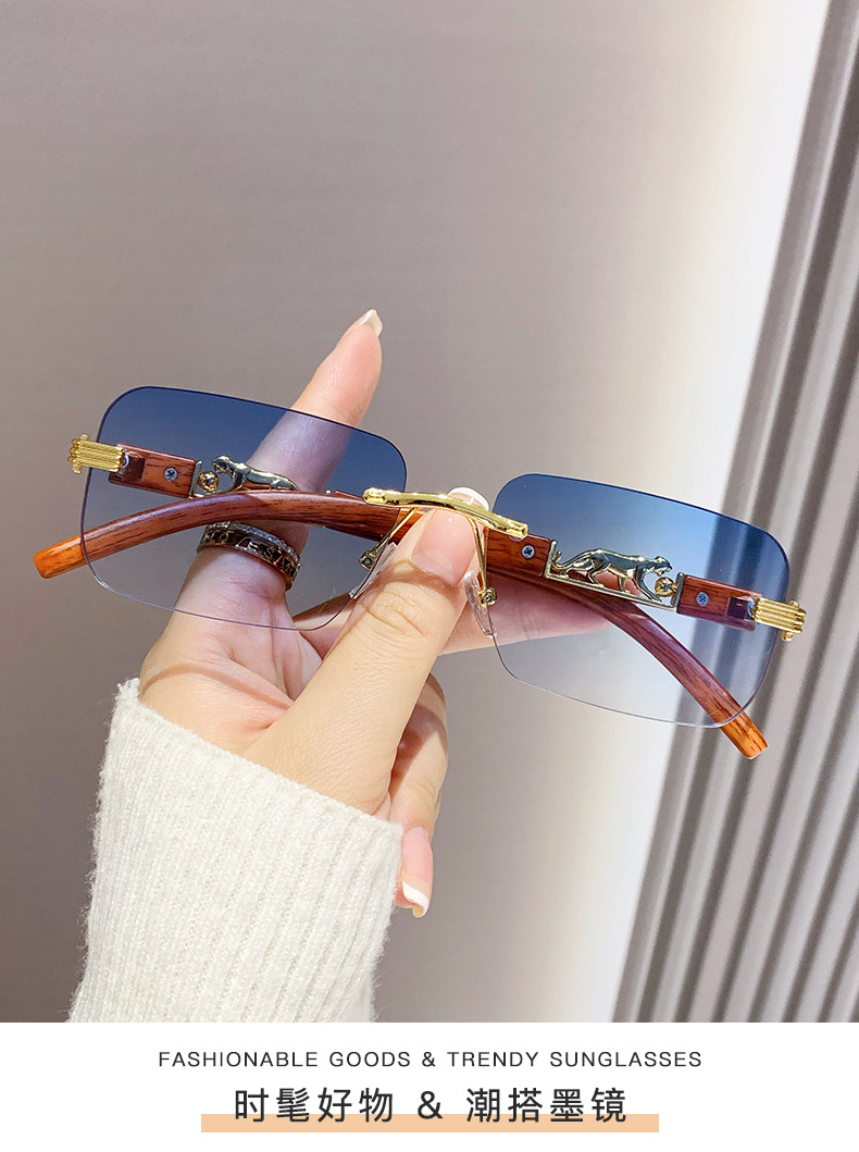 木纹豹子头太阳镜女新款潮流无框切边男士方框太阳眼镜潮墨镜